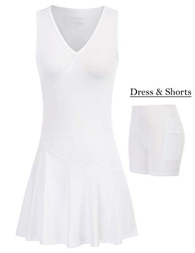 JACK SMITH Women 2 in 1 Tennis Dress V-Neck Sleeveless Golf Running Workout Dress Outfits with Shorts Pockets White XXL