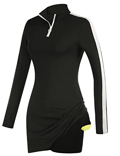 JACK SMITH Women Long Sleeve Golf Dress Quick Dry Mock Neck Exercise Dress with Inner Shorts Tennis Dresses Black M