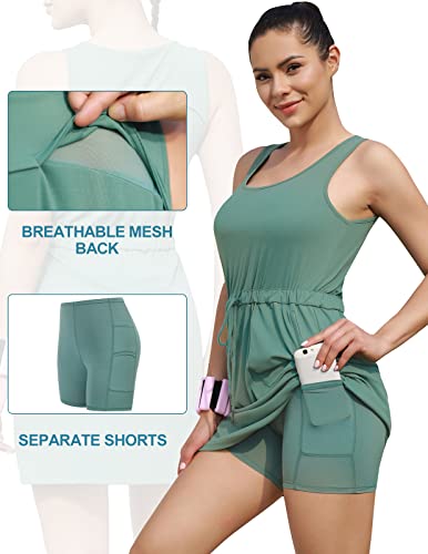 JACK SMITH Women's Drawstring Waist Dress Quick Dry Dress for Women with Pockets Tennis Dress Breathable (Teal L)