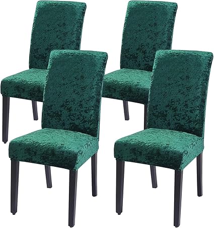 Joccun Velvet Chair Covers for Dining Room Set of 4, Washable Dining Chair Slipcovers Stretch Dining Room Chair Covers Seat Protector, Parsons Chair Cover for Home, Hotel, Banquet(Hunter, 4 Pack)