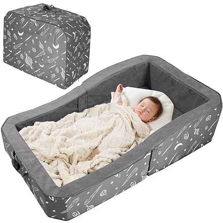 JOYWOO Toddler Floor Bed, Toddler Travel Bed for Kids, Foldable Portable Toddler Bed for Home/Playing/Nap/Hotel, Floor Bed for Kids with Washable Fitted Sheet, Baby Travel Bed for Kids, Grey