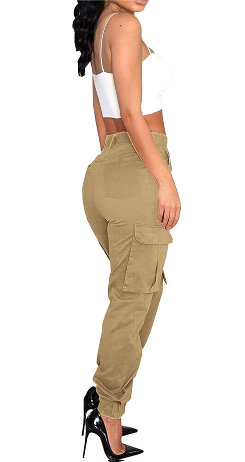 Khaki Cargo Pants Womens Joggers Hiking Pants Slim Outdoor Lounge Sweatpants Athletic Works Pants with Pockets