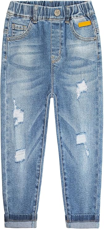 KIDSCOOL SPACE Girls Elastic Waist Slim Jeans, Ripped Fashion Simple Denim Pants