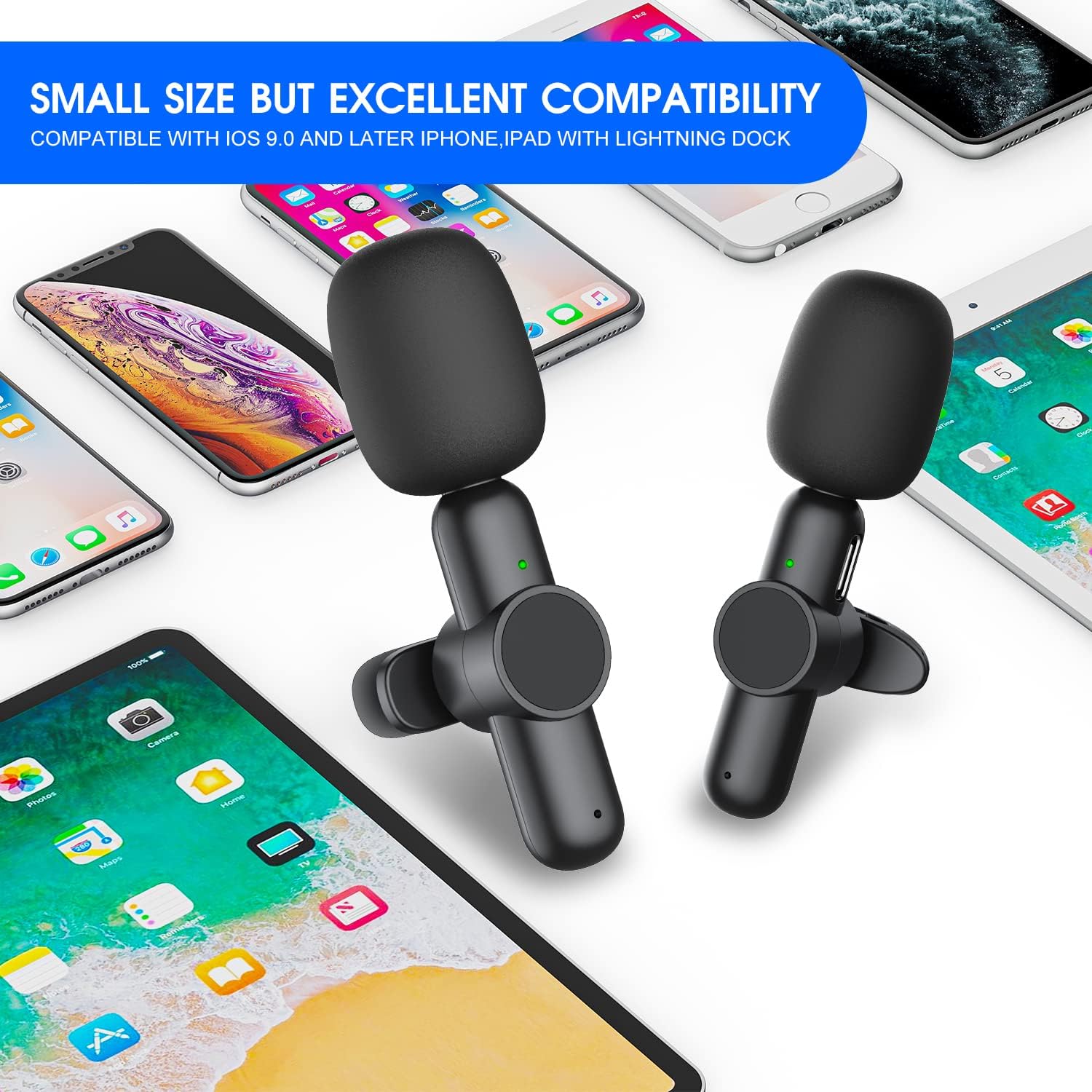 • 【Designed for iPhone/iPad video/voice recording】The wireless microphones supports systems above iOS9.0, can work with iPhone 7/ 7 Plus, 8/8 Plus, X/XR/XS/XS Max, 11/11 Pro/11 Pro Max, 12/12 Pro/12 Pro Max, 13/13 Pro/13 Pro Max, 14/14 Pro; iPad 2nd/3rd/4th...10th gen; iPad Air series(Except the 4th gen); iPad Mini(Except the 6th gen); iPad Pro series (Except the 1st/2nd/3rd gen 11in. The 3rd/4th/5th gen 12.9in) 【Not support type-c port】