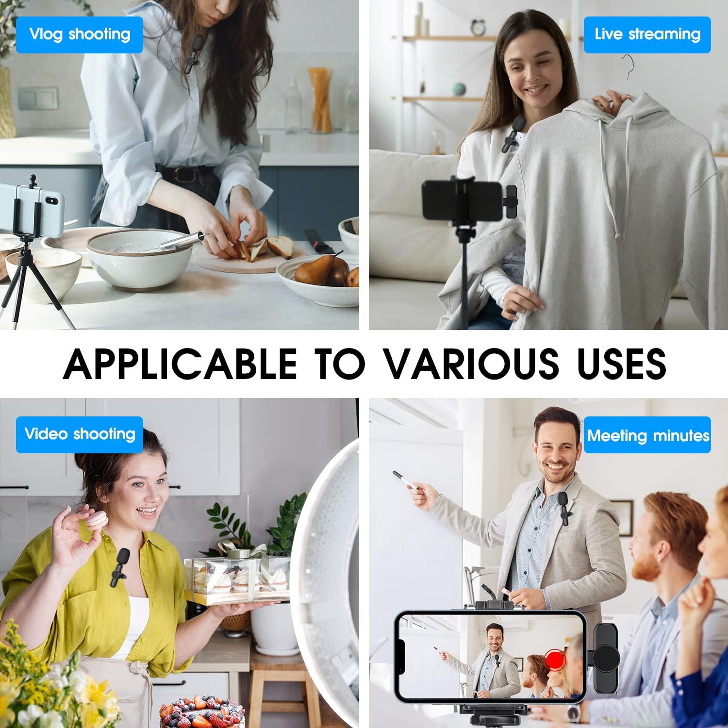 • 【Plug AND Play】No Bluetooth, No APP needed! Just plug the Lightning connector into the Phone, and clip the mini microphone onto the shirt, and it starts working in One Second. 2 packs of lav mic allow two people to get involved in a video recording together, providing efficiency and convenience for a team worker. Suit for Vlog, Interview, Live streaming, YouTube, TikTok, Podcast, Instagram, Online video tutorial, and Singing recording, etc.