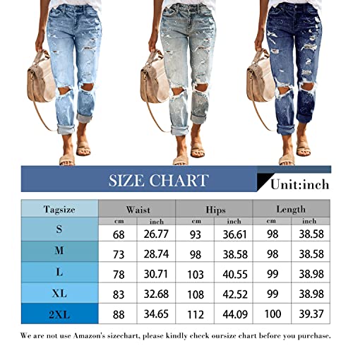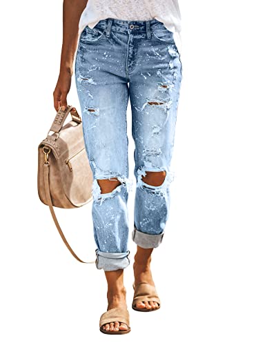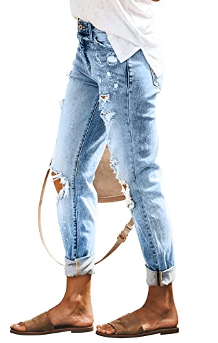 KUNMI Women's Ripped Mid Waisted Boyfriend Jeans Loose Fit Distressed Stretchy Denim Pants