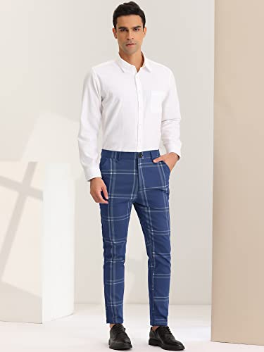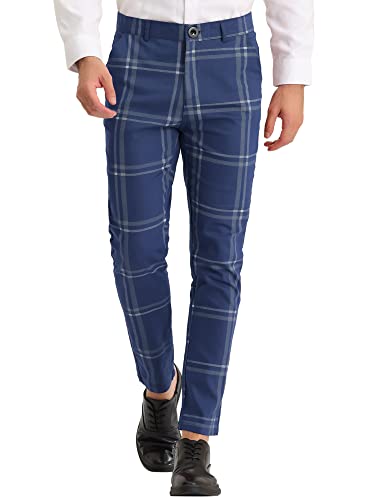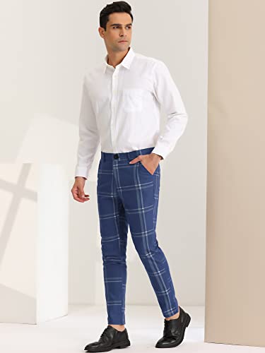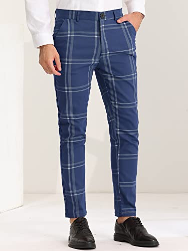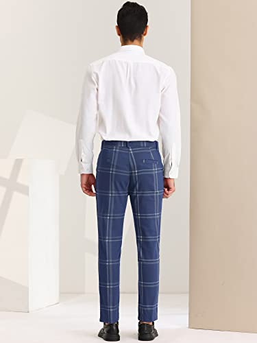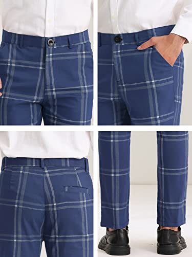Lars Amadeus Men's Dress Navy Blue Plaid Slim Fit Flat Front Business Prom Checked Trousers 32