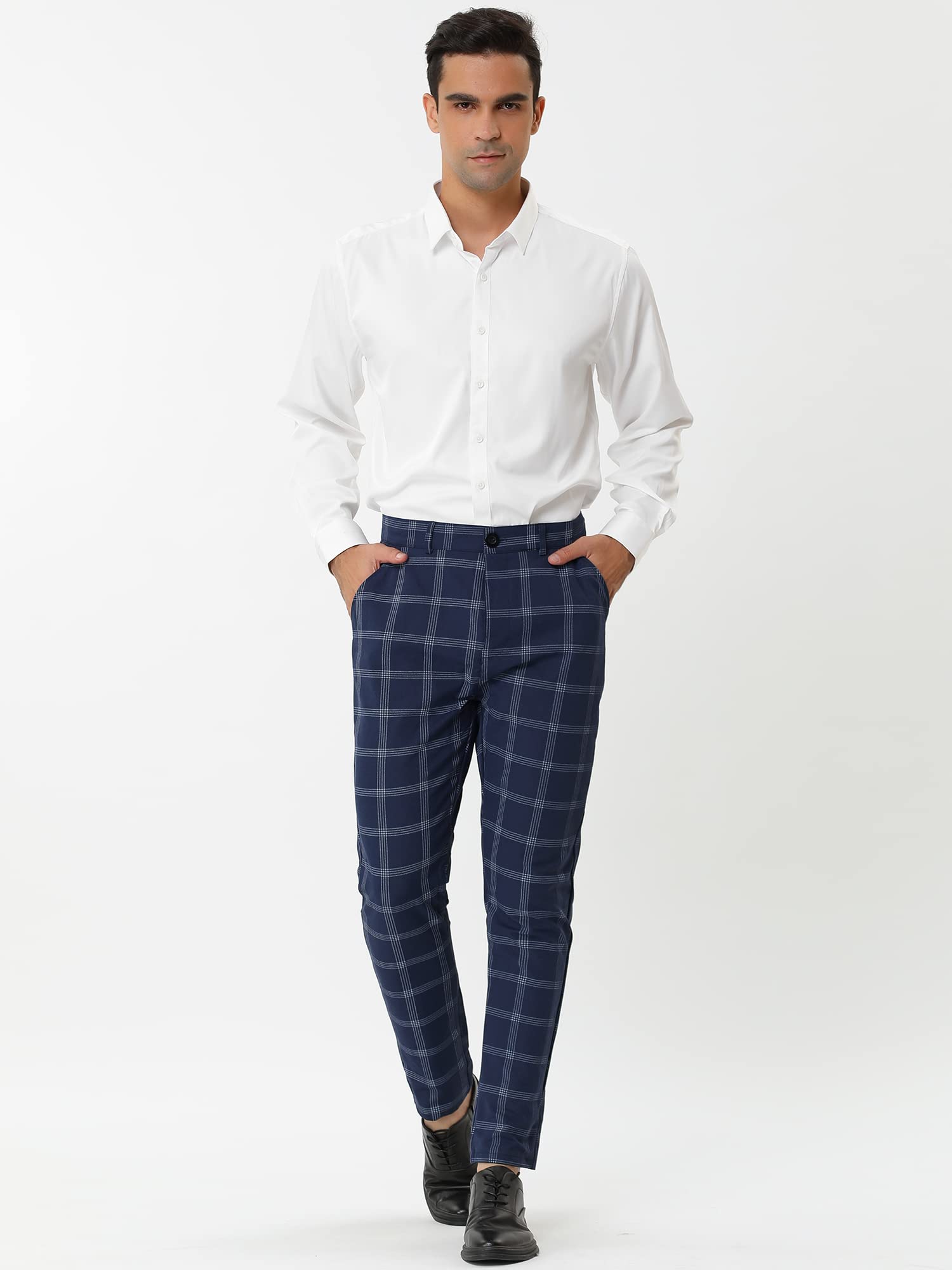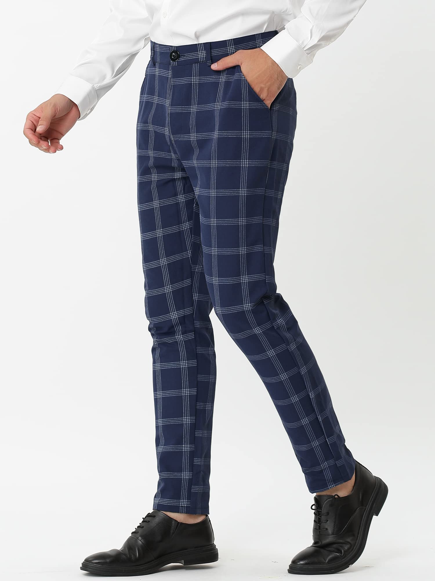 Lars Amadeus Men's Dress Plaid Slim Fit Flat Front Business Pencil Pants with Pockets 32 Brown
