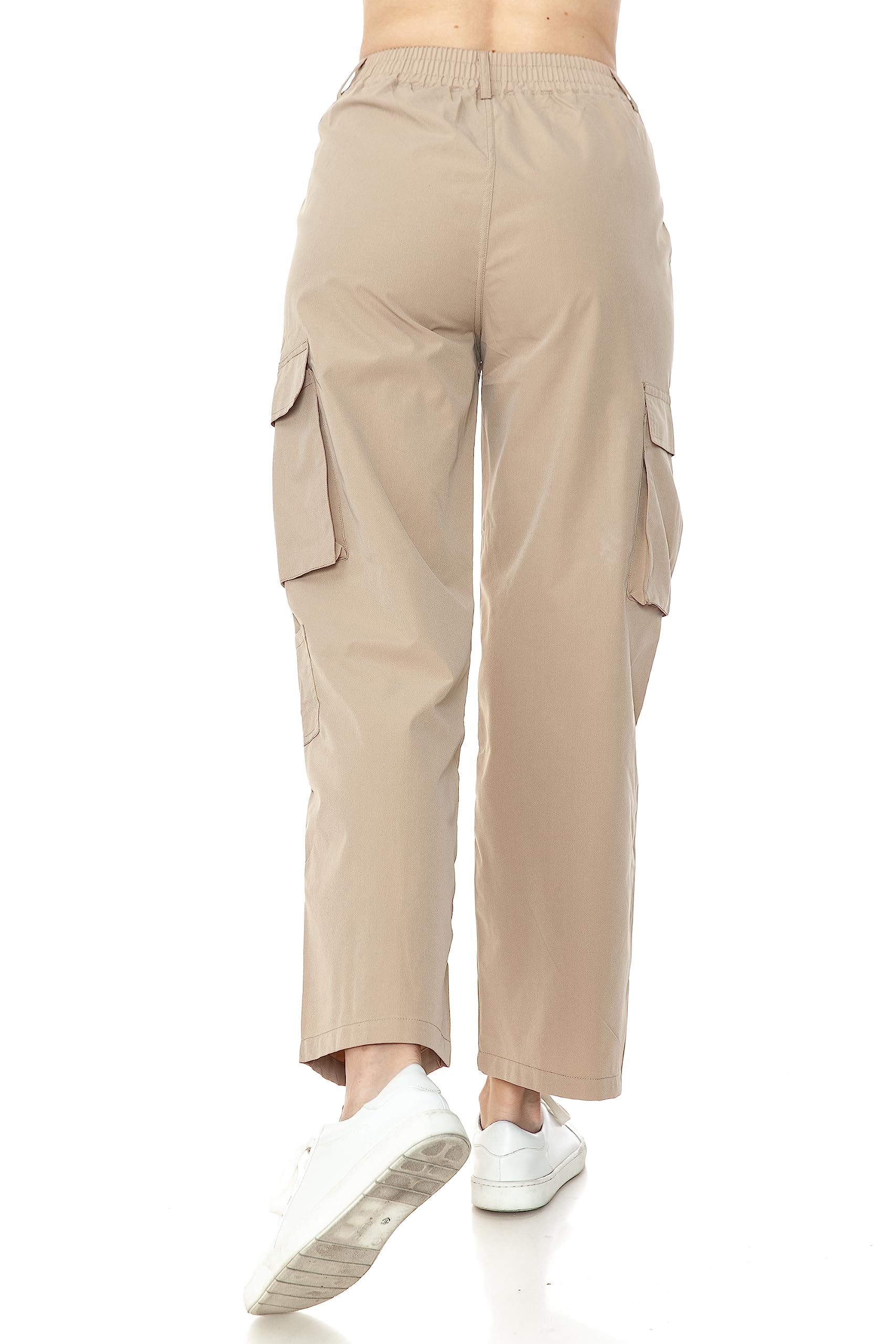 Leggings Depot High Waisted Women’s Straight Wide Leg Trousers w/Pockets, Baggy Cargo Pants, Khaki-Large