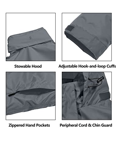 Little Donkey Andy Men's Waterproof Rain Jacket Outdoor Lightweight Rain Shell Coat for Hiking,Golf,Travel Gray Size L