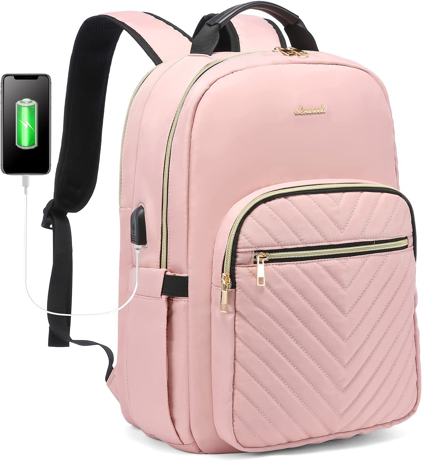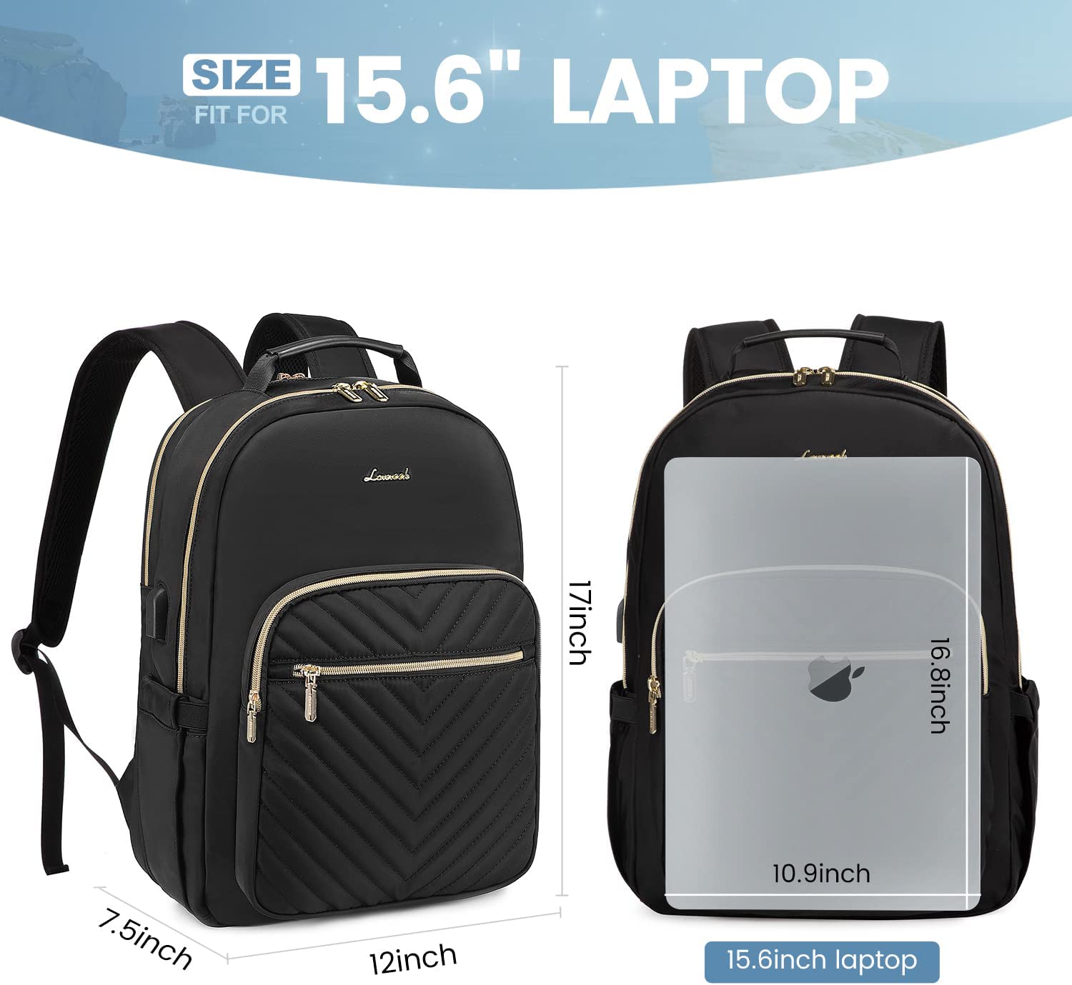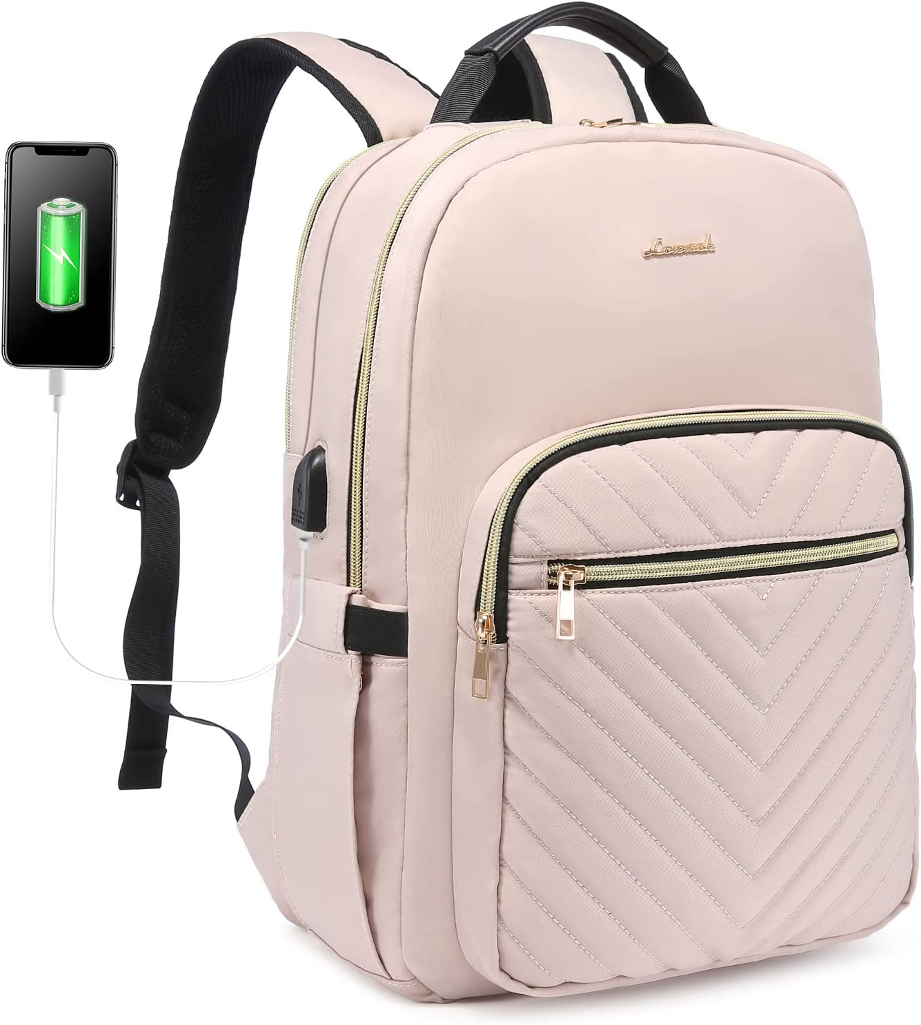 LOVEVOOK Laptop Backpack Purse for Women, Work Business Travel Computer Bags, Teacher Nurse Backpack for Womens, Quilted Casual College Daypack with USB Port, Fit 15.6 Inch Laptop, Black