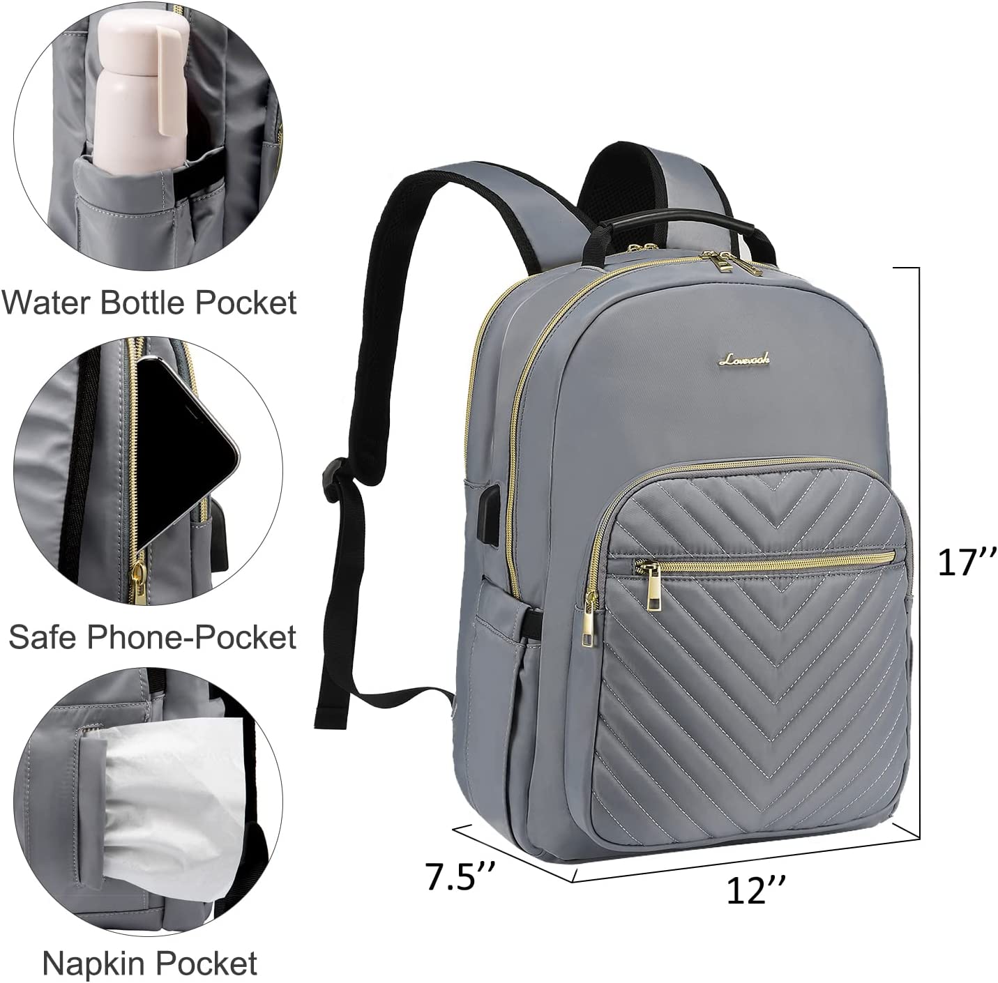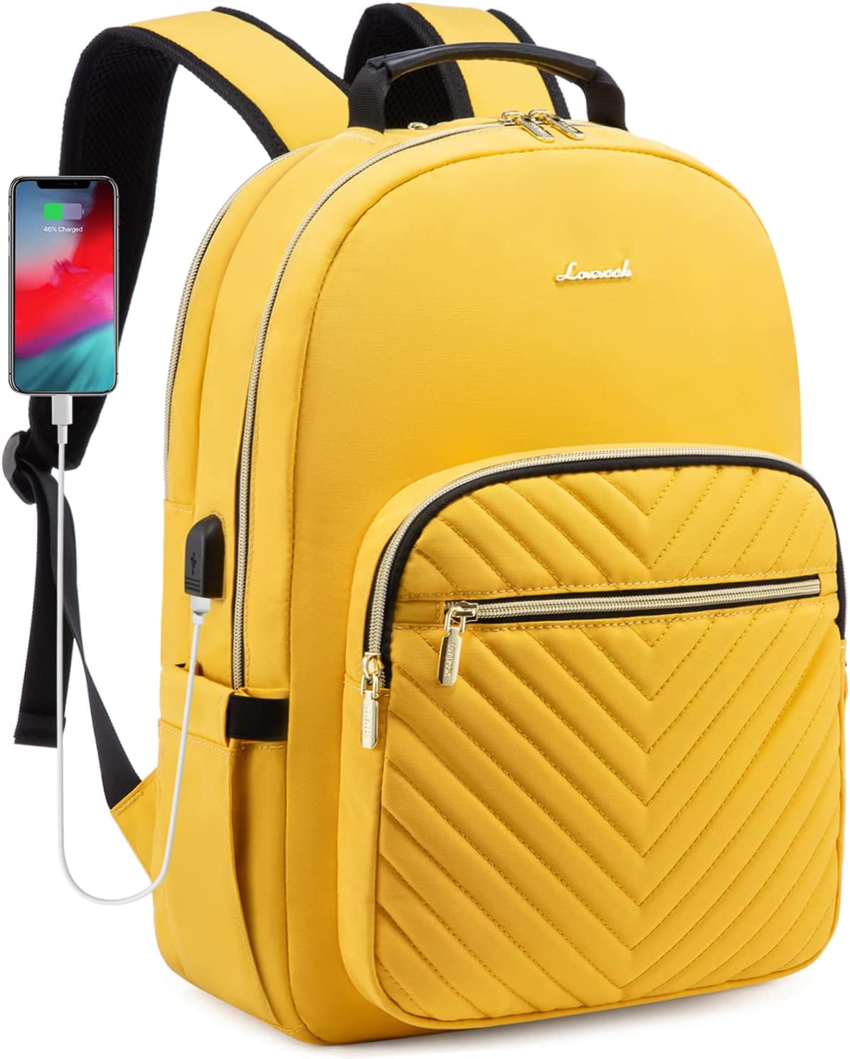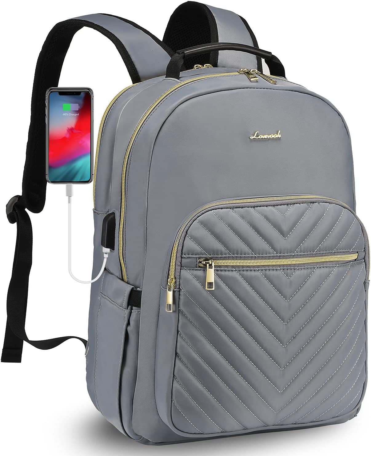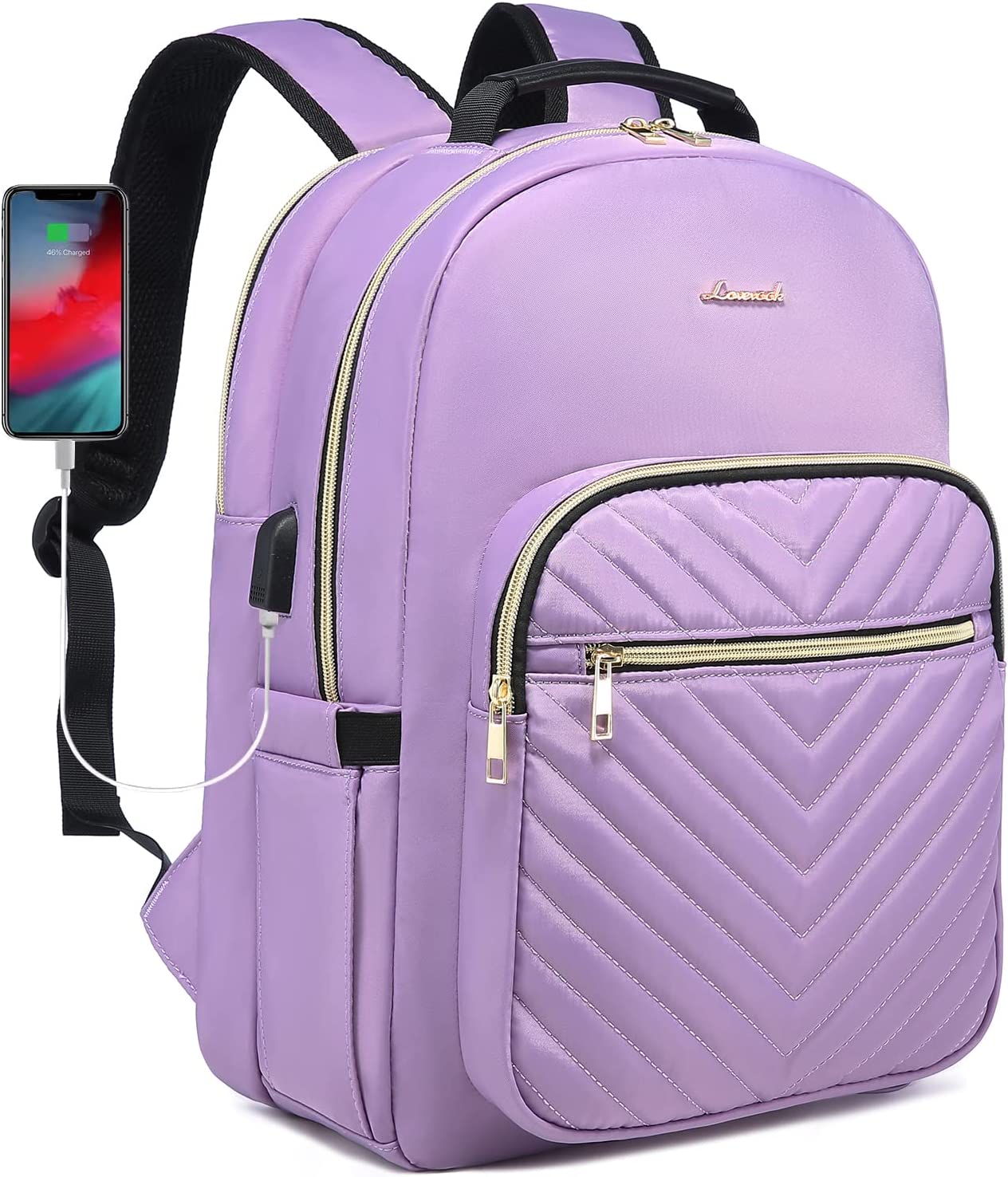 LOVEVOOK Laptop Backpack Purse for Women, Work Business Travel Computer Bags, Teacher Nurse Backpack for Womens, Quilted Casual College Daypack with USB Port, Fit 15.6 Inch Laptop, Black