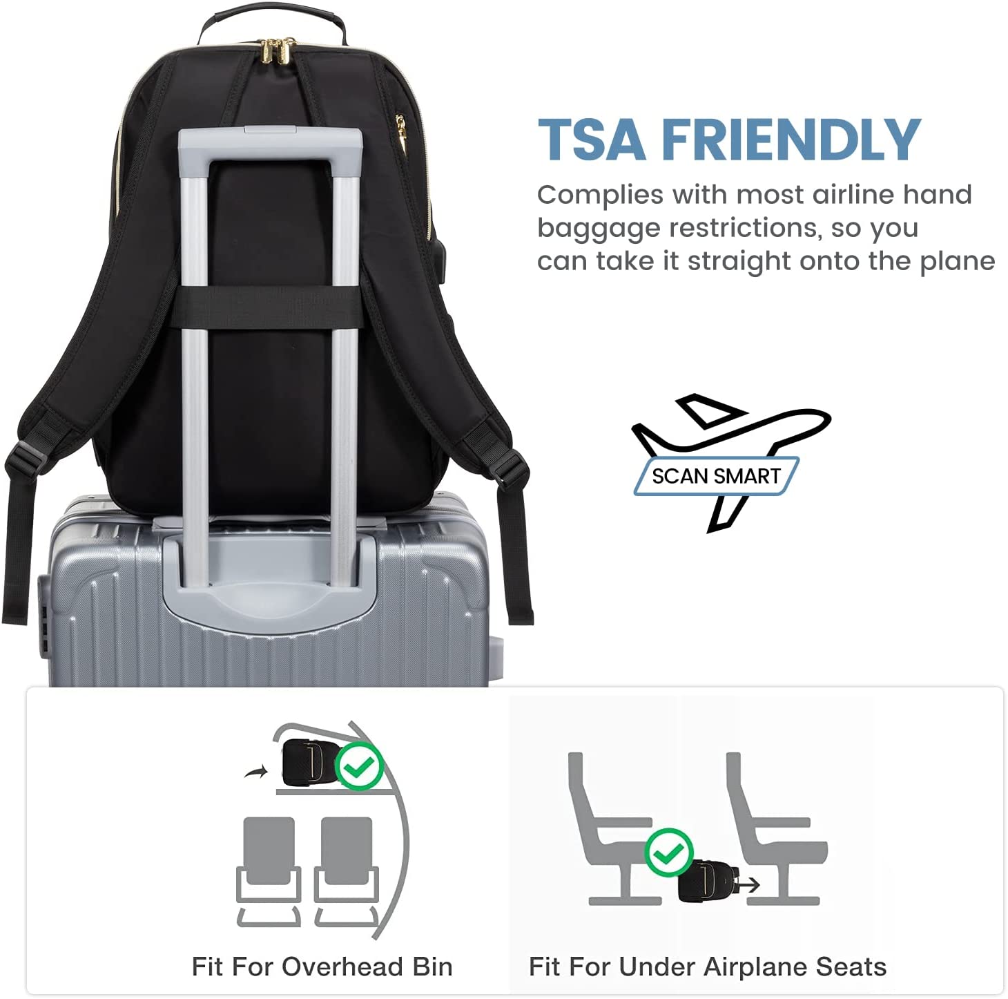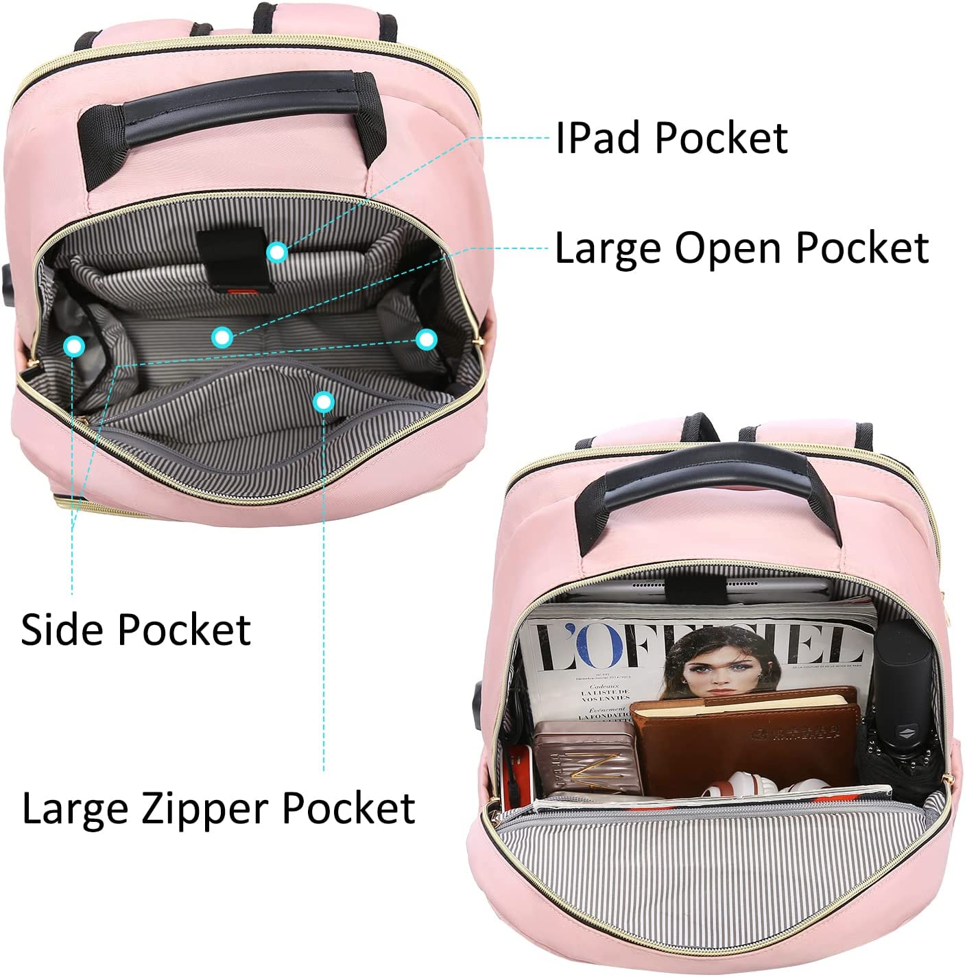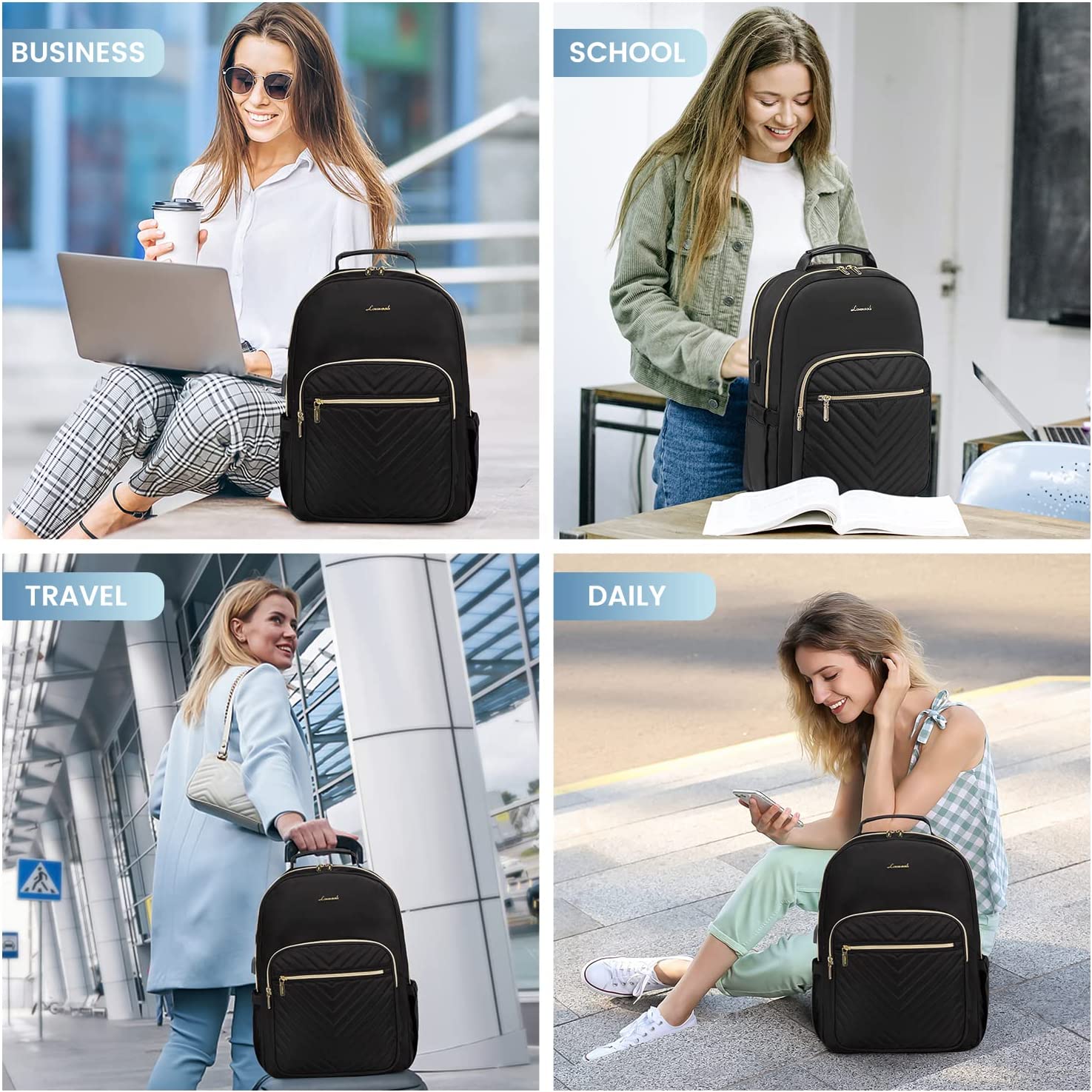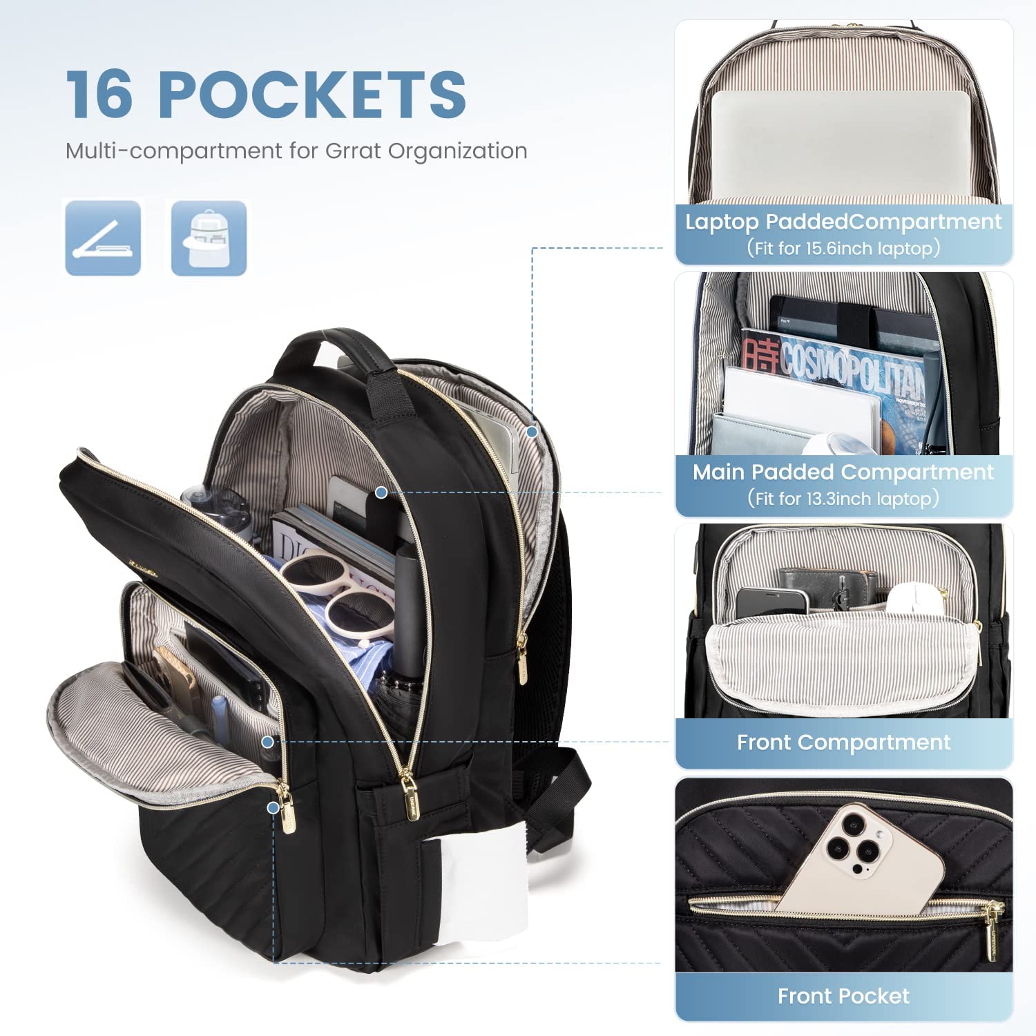 • 【MULTI-COMPARTMENTS & POCKETS】This women's business work backpack is designed with 4 compartments and 17 pockets. Ample pockets keep your travel items organized.