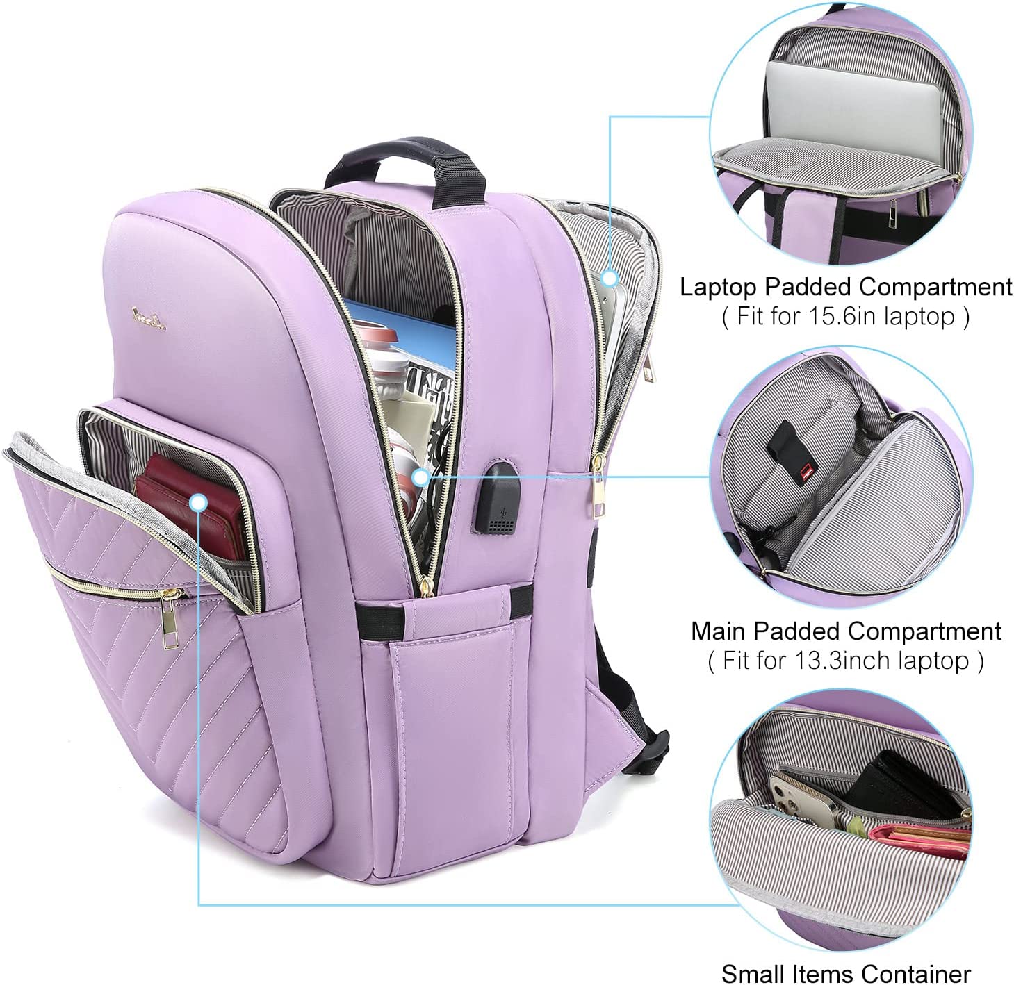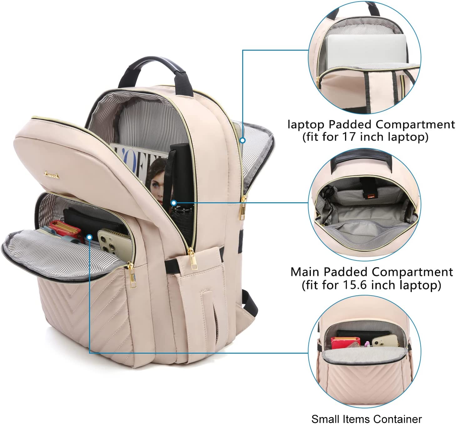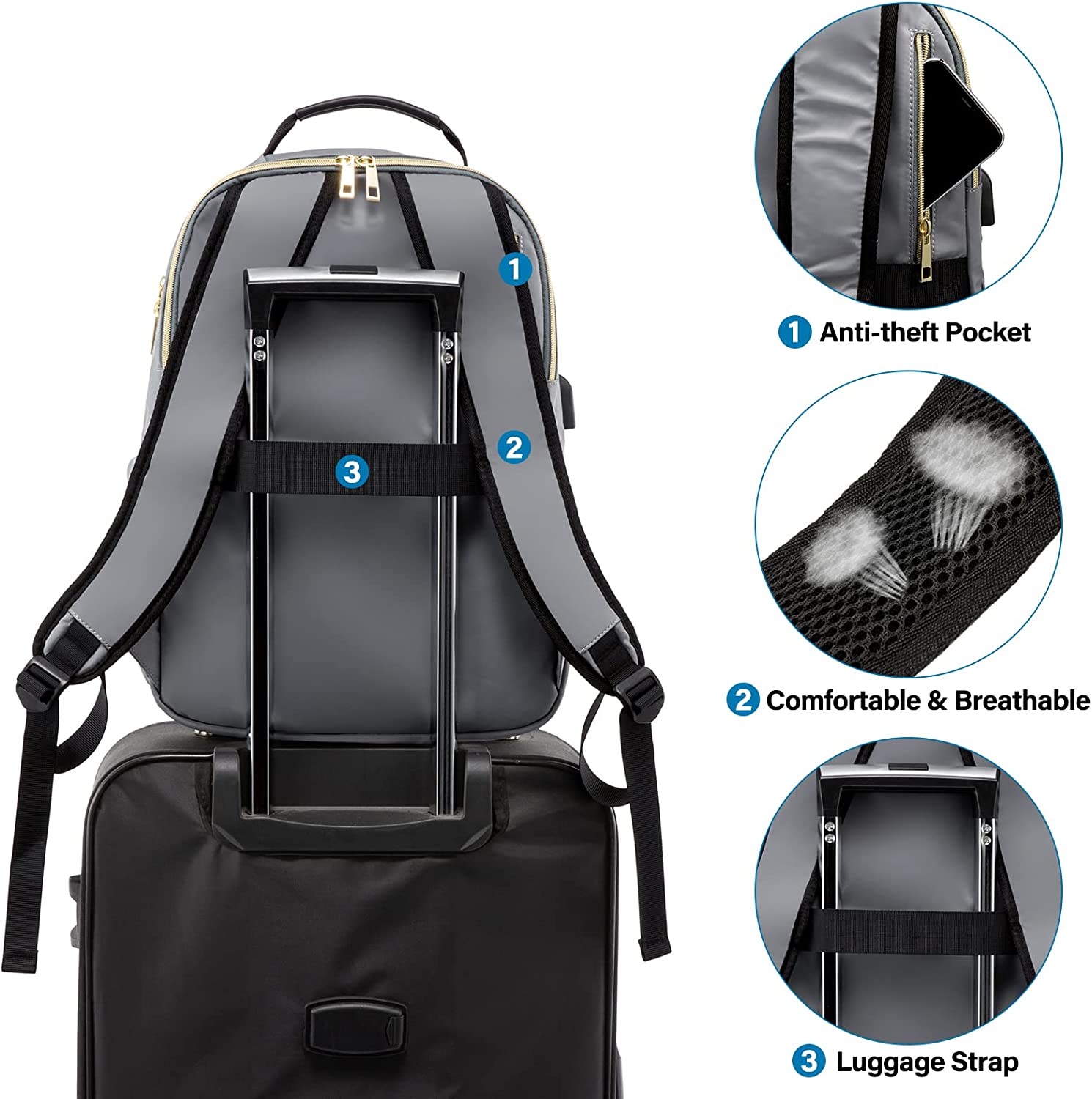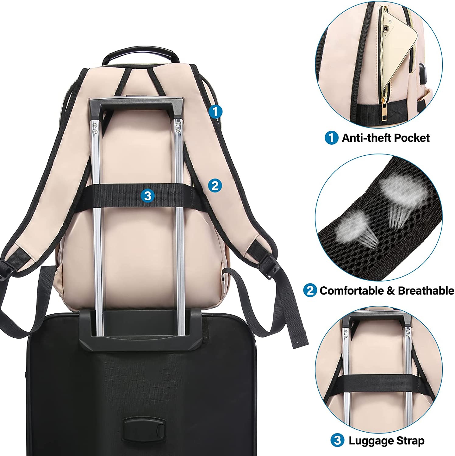 • 【MULTI-COMPARTMENTS & POCKETS】This women's business work backpack is designed with 4 compartments and 17 pockets. Ample pockets keep your travel items organized.