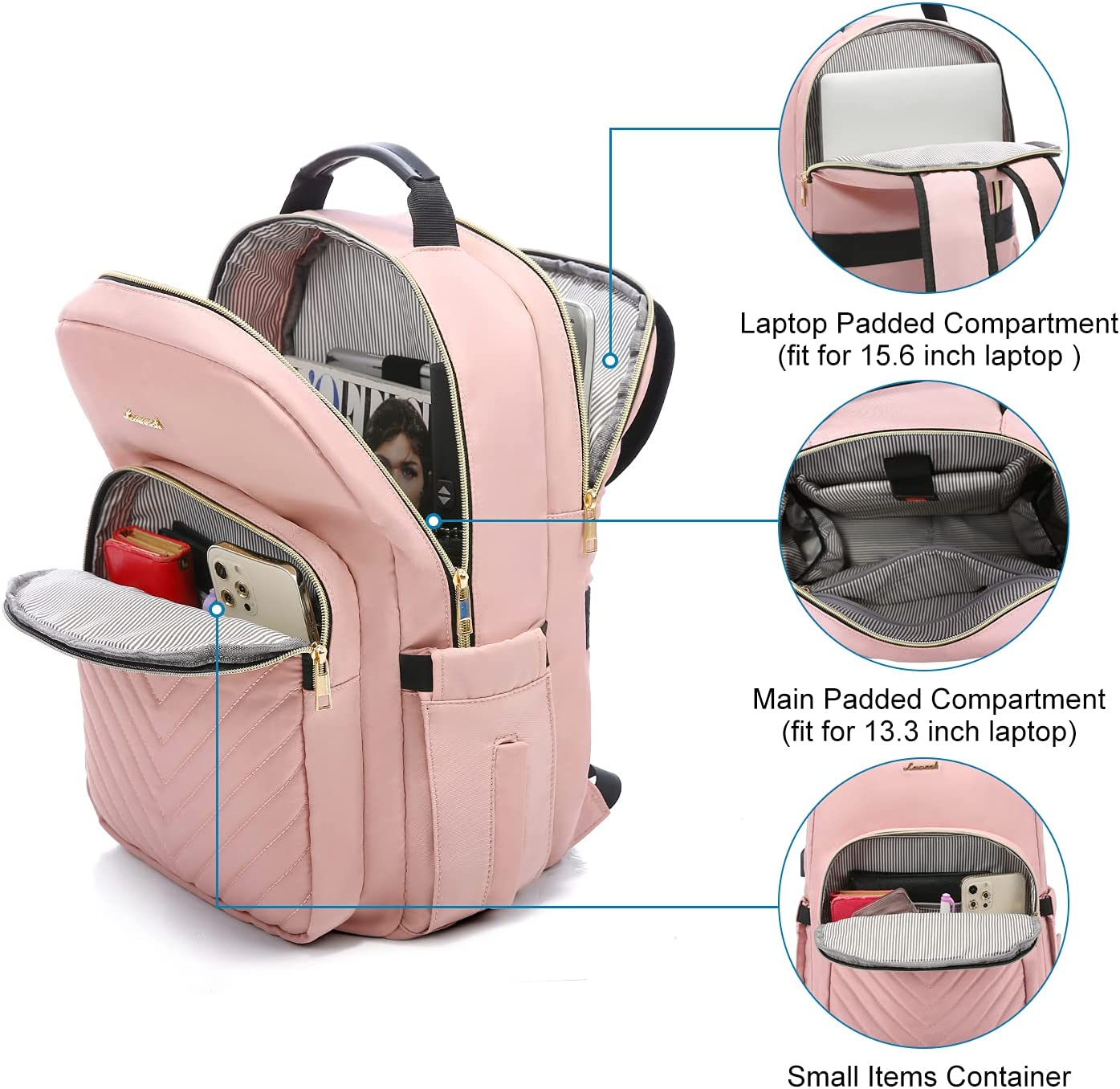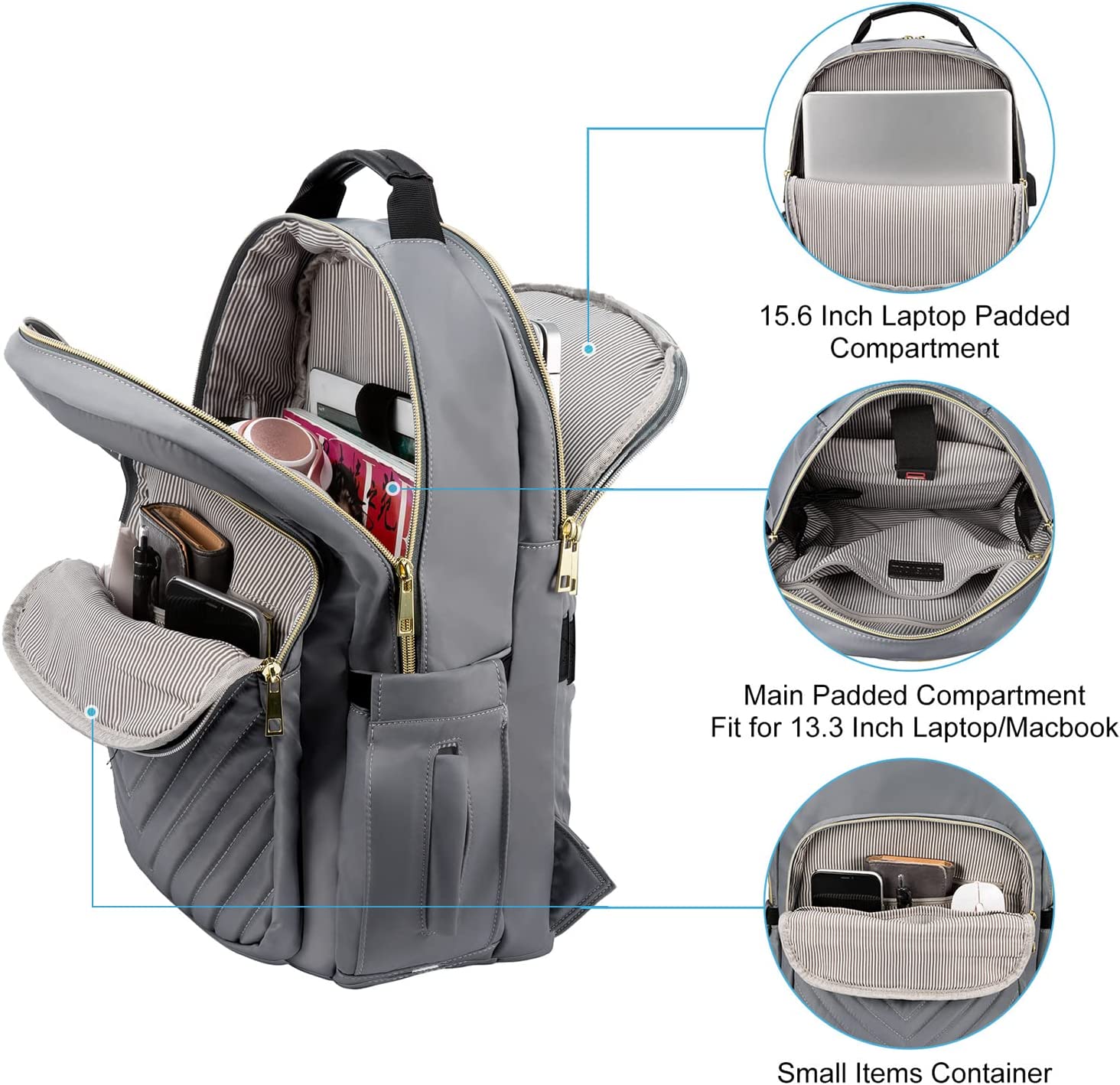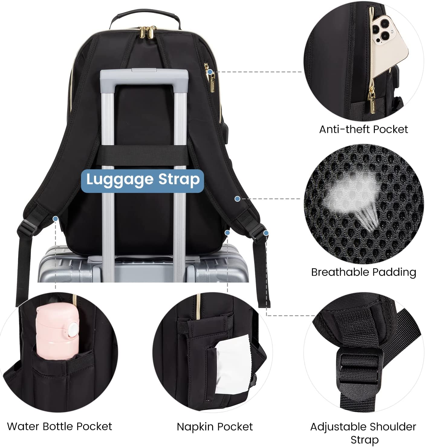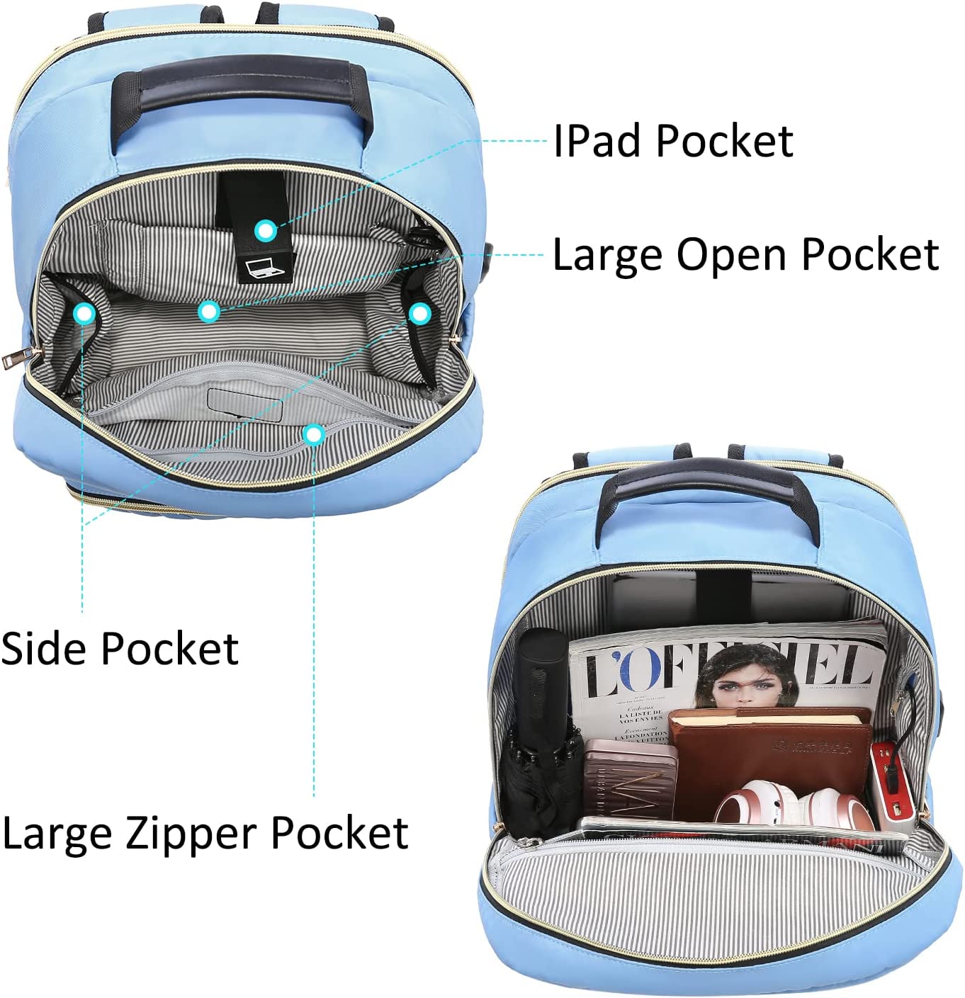 • 【MULTI-COMPARTMENTS & POCKETS】This women's business work backpack is designed with 4 compartments and 17 pockets. Ample pockets keep your travel items organized.