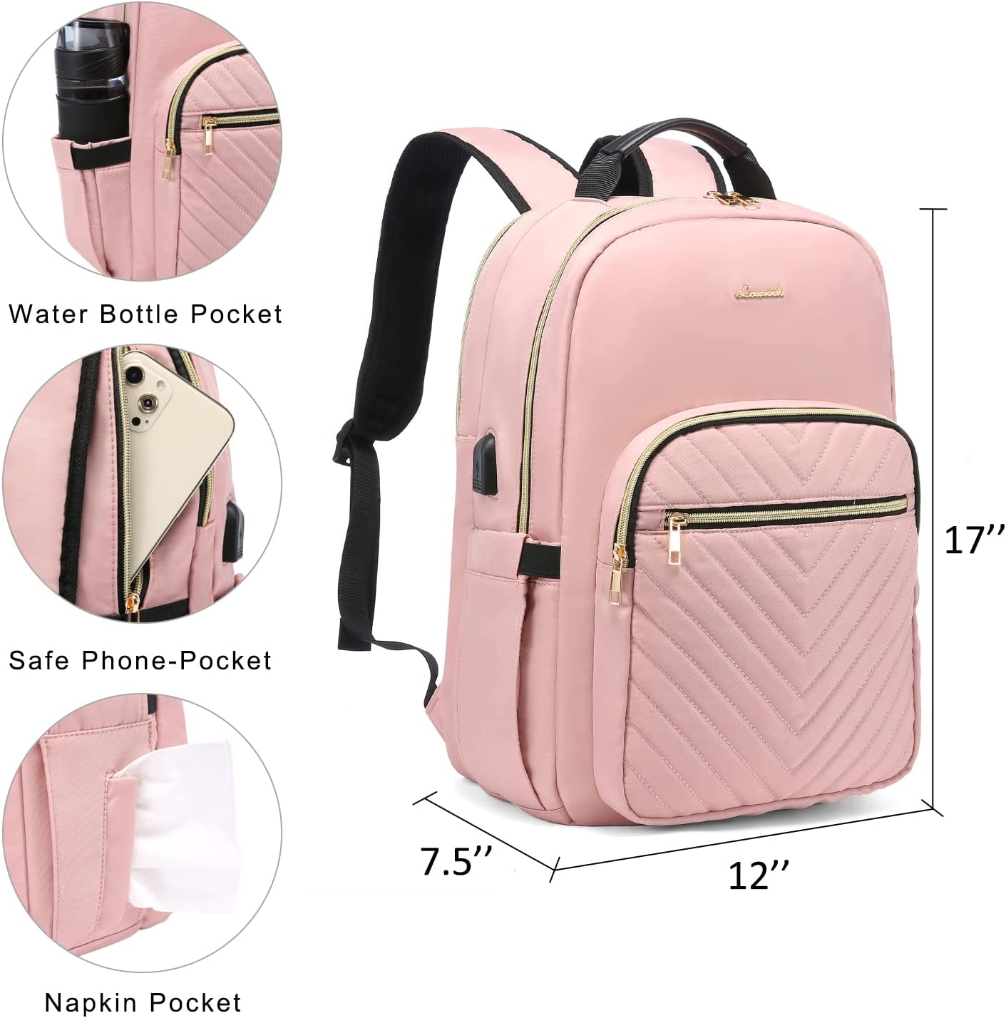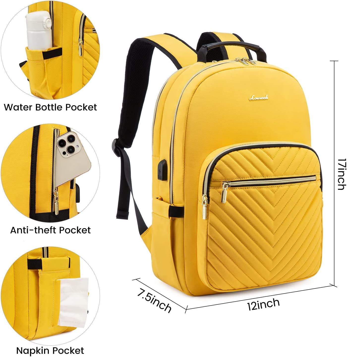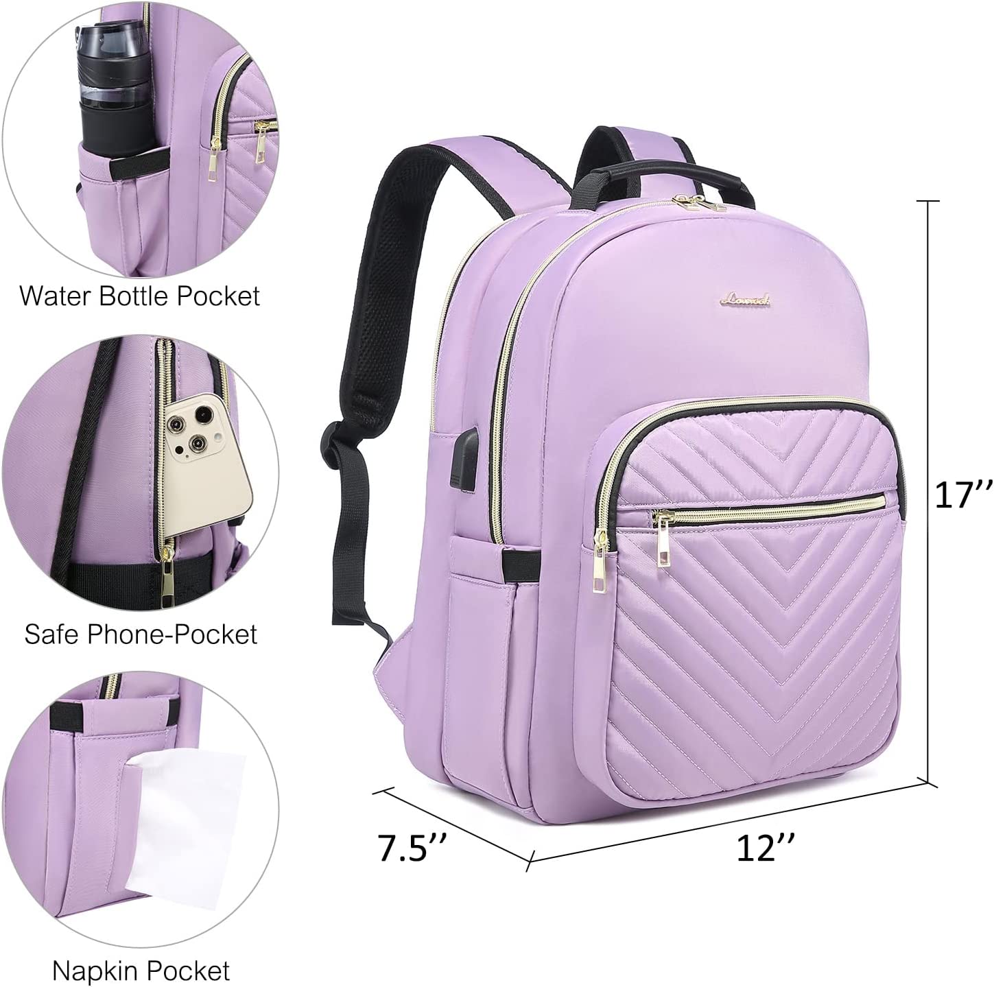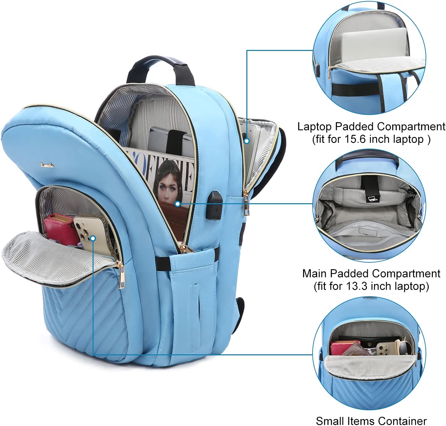 • 【MULTI-COMPARTMENTS & POCKETS】This women's business work backpack is designed with 4 compartments and 17 pockets. Ample pockets keep your travel items organized.
