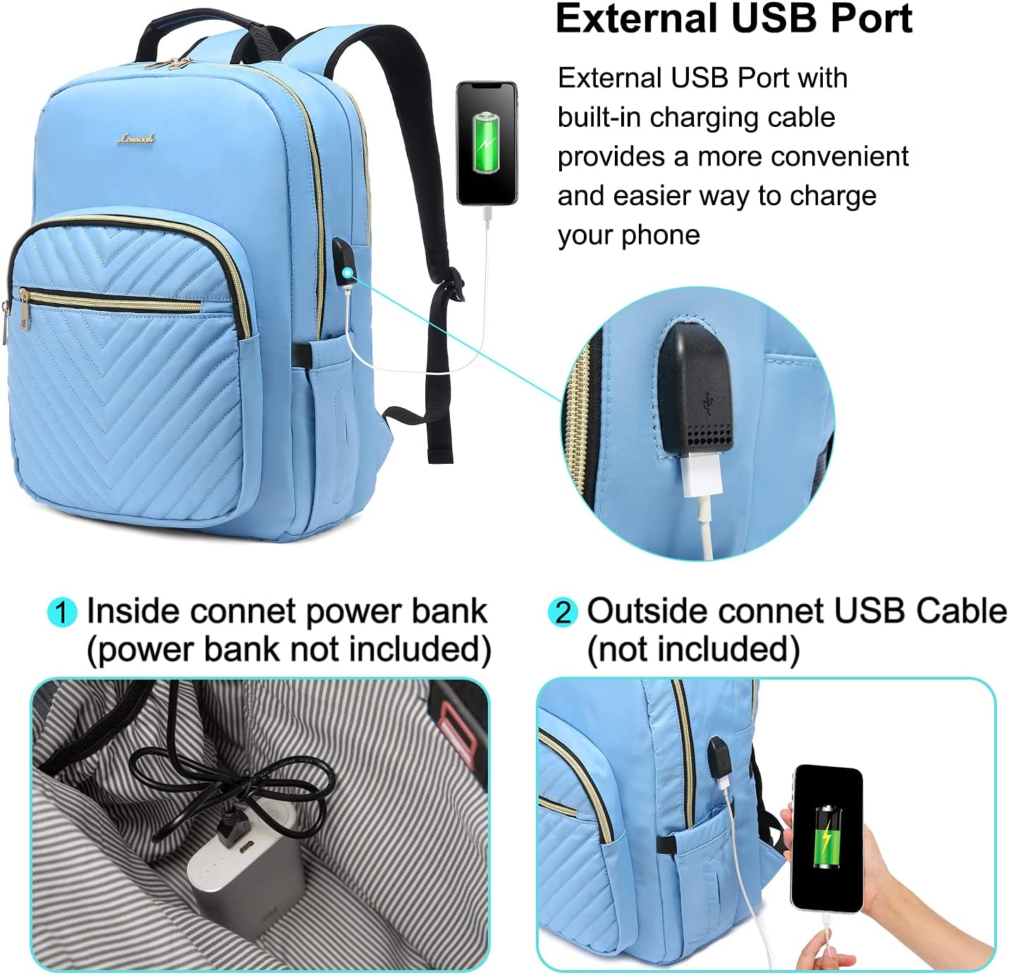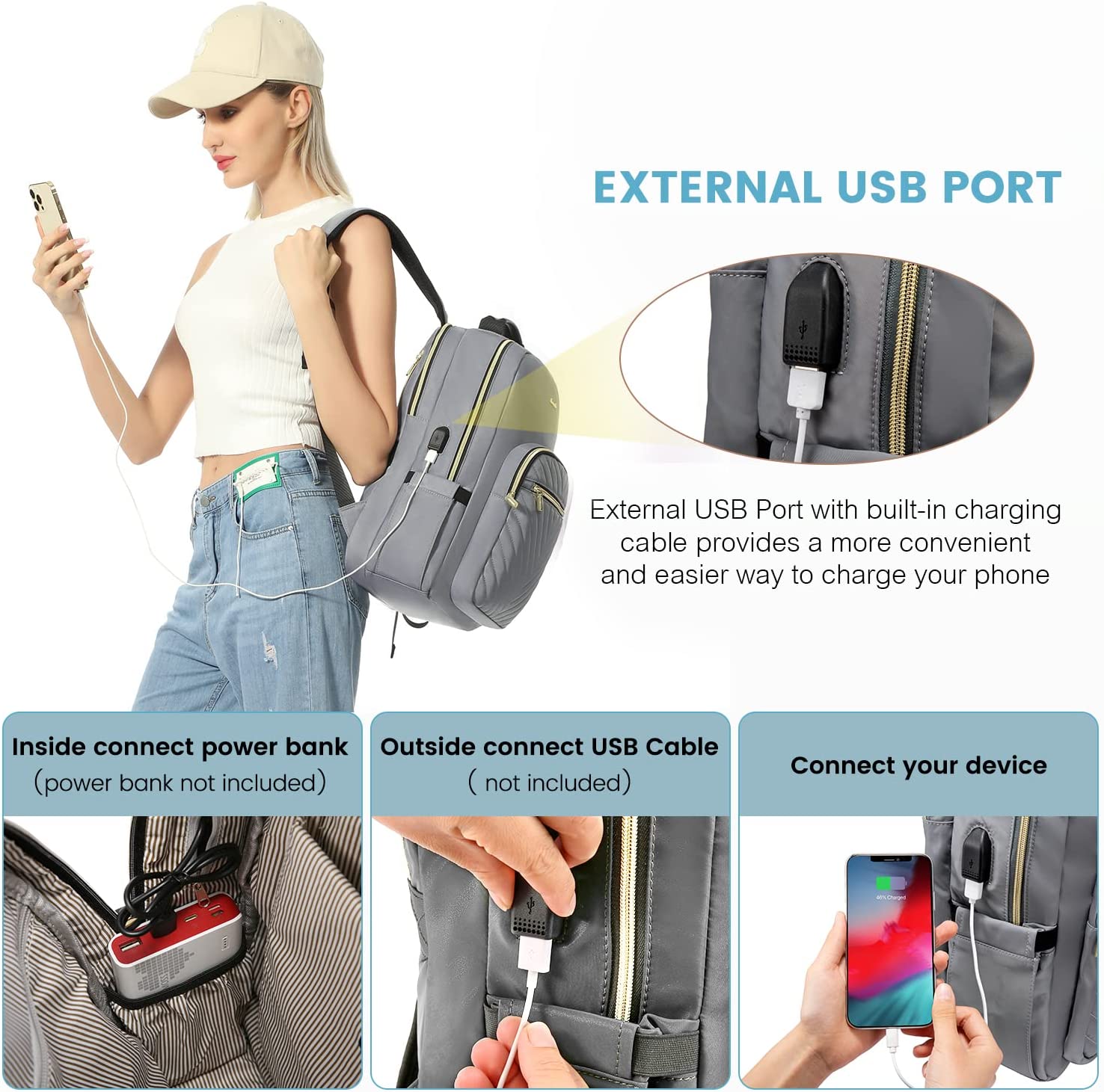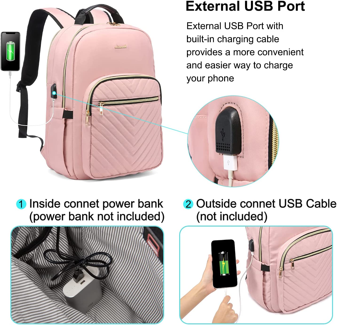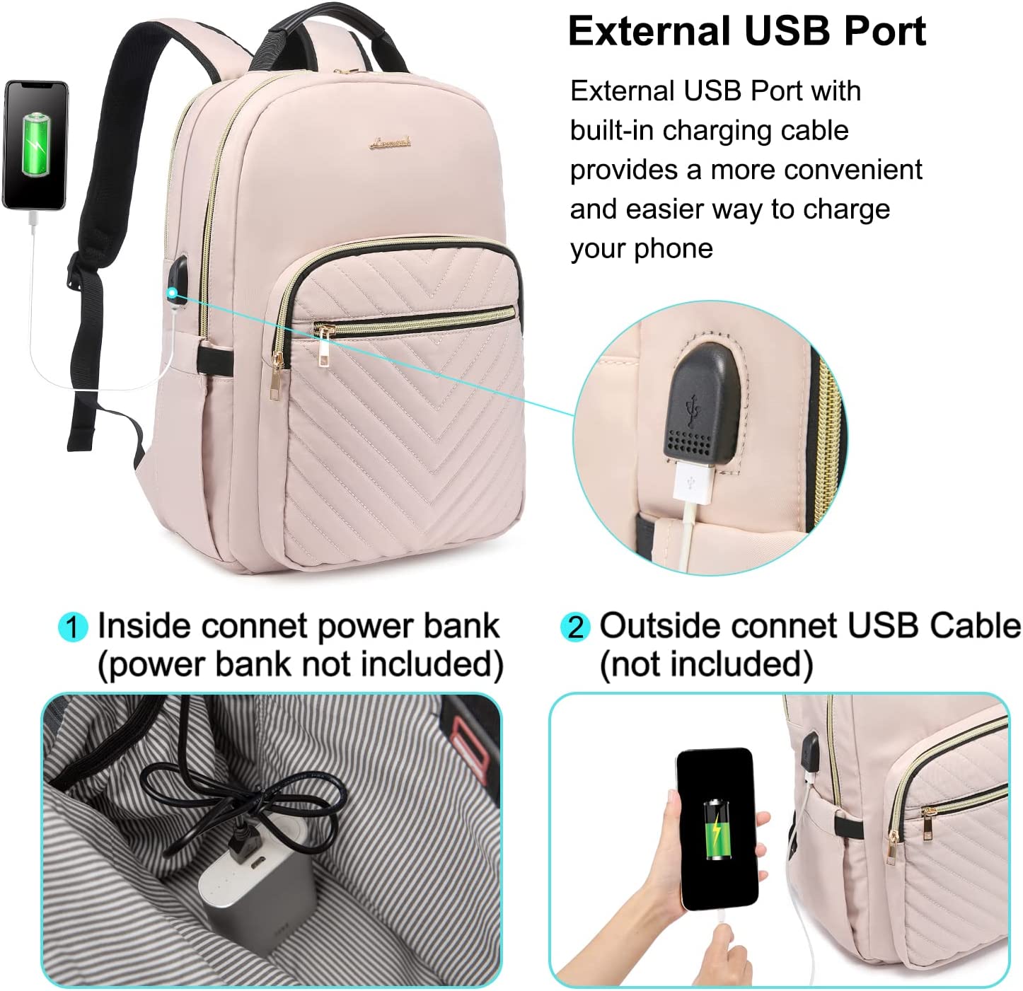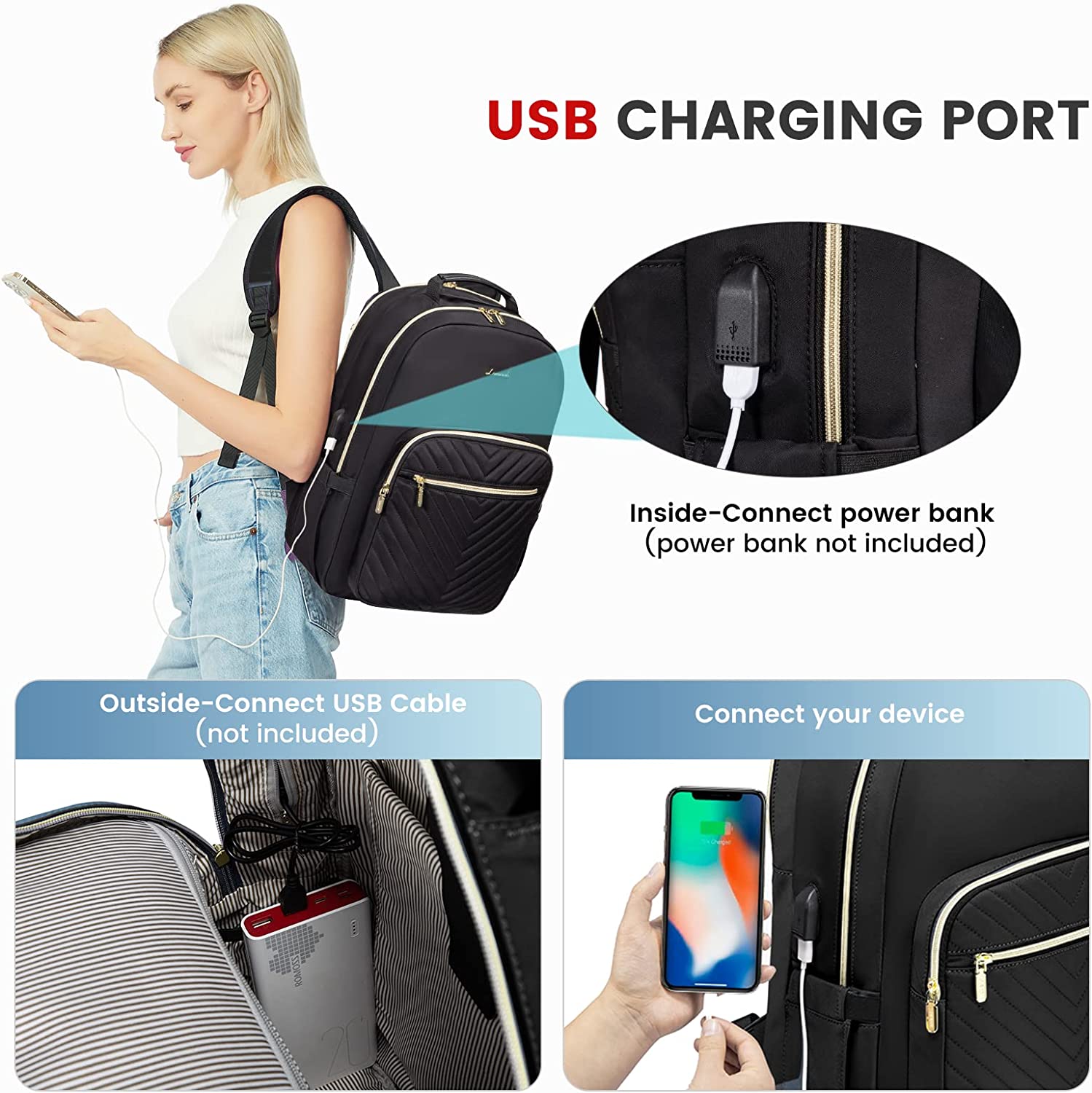 • 【USB PORT DESIGN】Great tech design. You can easily connect your phone to the USB port, giving you a more convenient way to charge your phone while walking.(POWER BANK IS NOT INCLUDED)