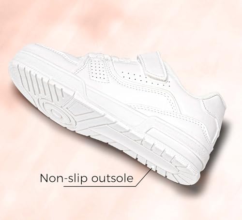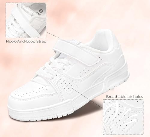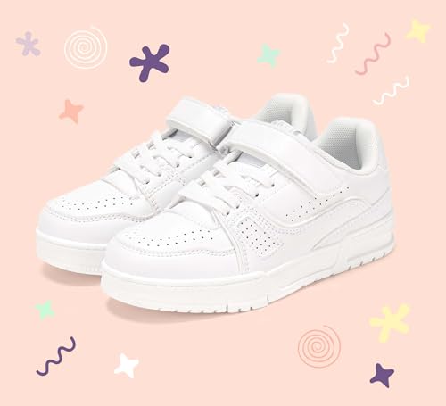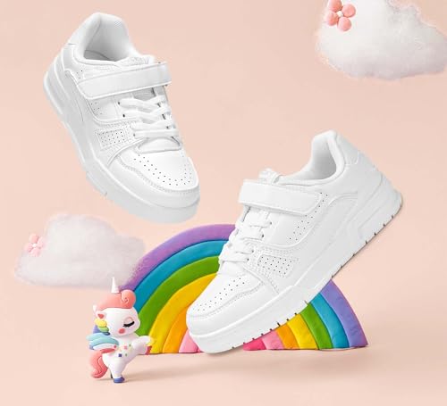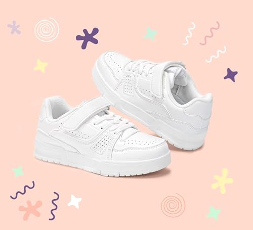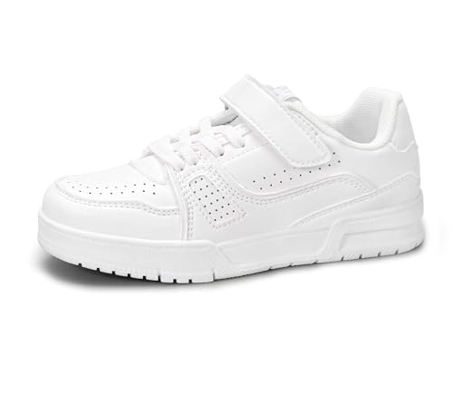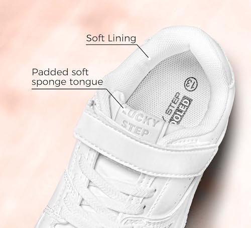 LUCKY STEP Children/Kids/Boys/Girl Comfort Casual School Low Top Sneaker Strap Athletic Tennis Running Shoes (All White,Little Kids 1)