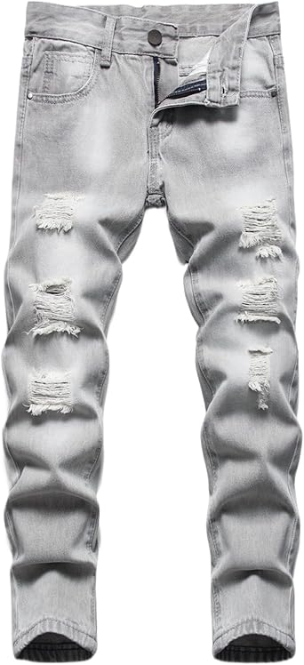Maiyifu-GJ Boy's Slim Straight Fit Ripped Jeans Destroyed Distressed Denim Jeans Kids Classic Washed Jean Pants with Holes