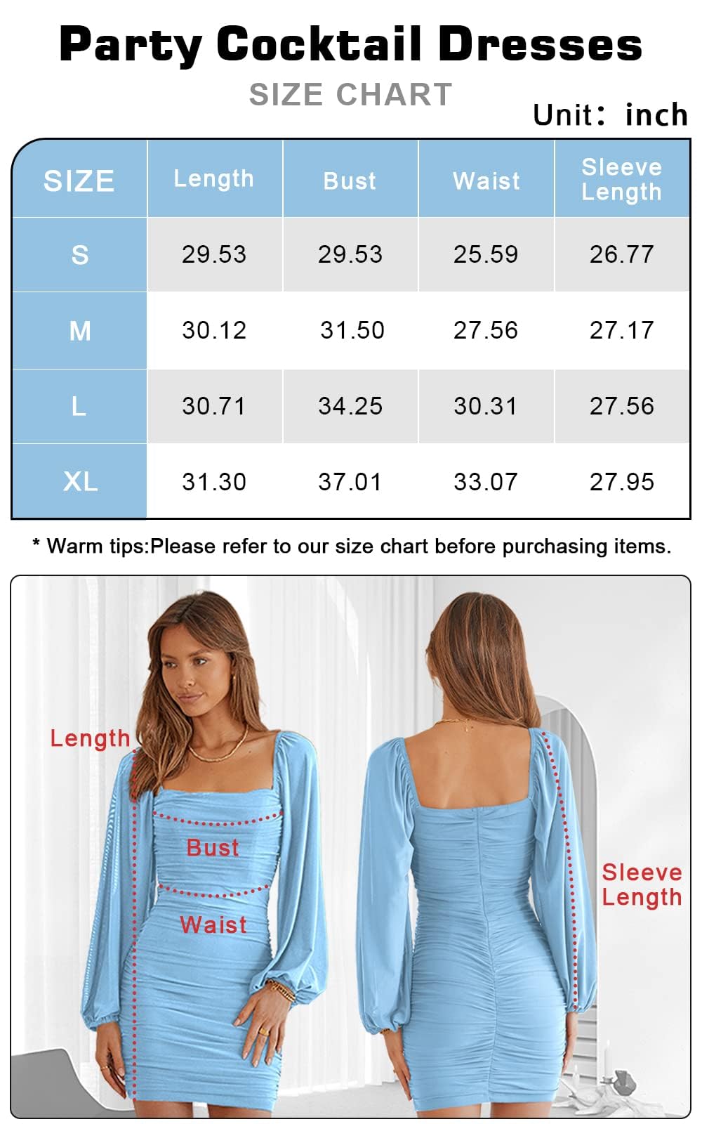 • Hightlights:Cute Long Sleeve Bodycon Dress,Sexy Short Dresses for Women 2024,Long Sleeve Ruched Dresses for Women,Lantern Sleeve Dress Bodycon,Mesh Ruched Dresses for Women,Square Neck Dress Bodycon,Long Sleeve Cocktail Dress. This Tight Mini Dress for Women Comes With Solid Color,Mesh Long Lantern Sleeve,Sheer Long Sleeve,Square Neck,Above Knee Length,Ruched Design on the Front And Back,Elastic at the Cuffs And Shoulders,So It Won’t Slip Off Easily.