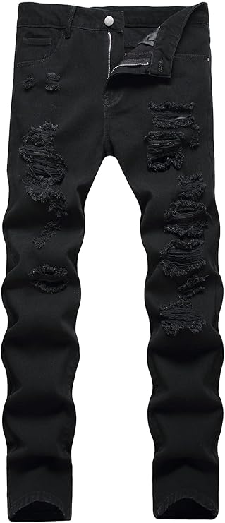 Men's Jeans Slim Fit Ripped Straight Leg Distressed Fashion Denim Pants