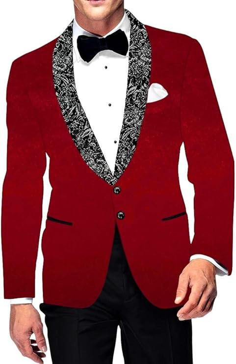 Mens Slim fit Casual Crimson Velvet Blazer Sport Jacket Coat Two Button VB18260XL46 46 X-Long Crimson