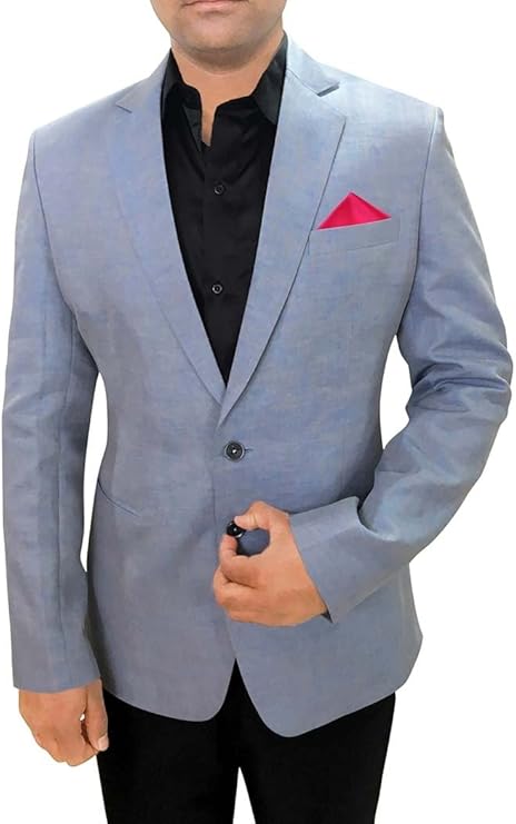 Mens Slim fit Casual Sky Blue Linen Blazer Sport Jacket Coat Notch Collar SB87XL54 54 X-Long Sky Blue
