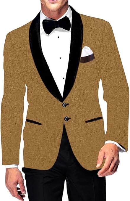 Mens Slim fit Casual Tan Color Velvet Blazer Sport Jacket Coat Shawl Lapel VB18294XL50 50 X-Long Tan