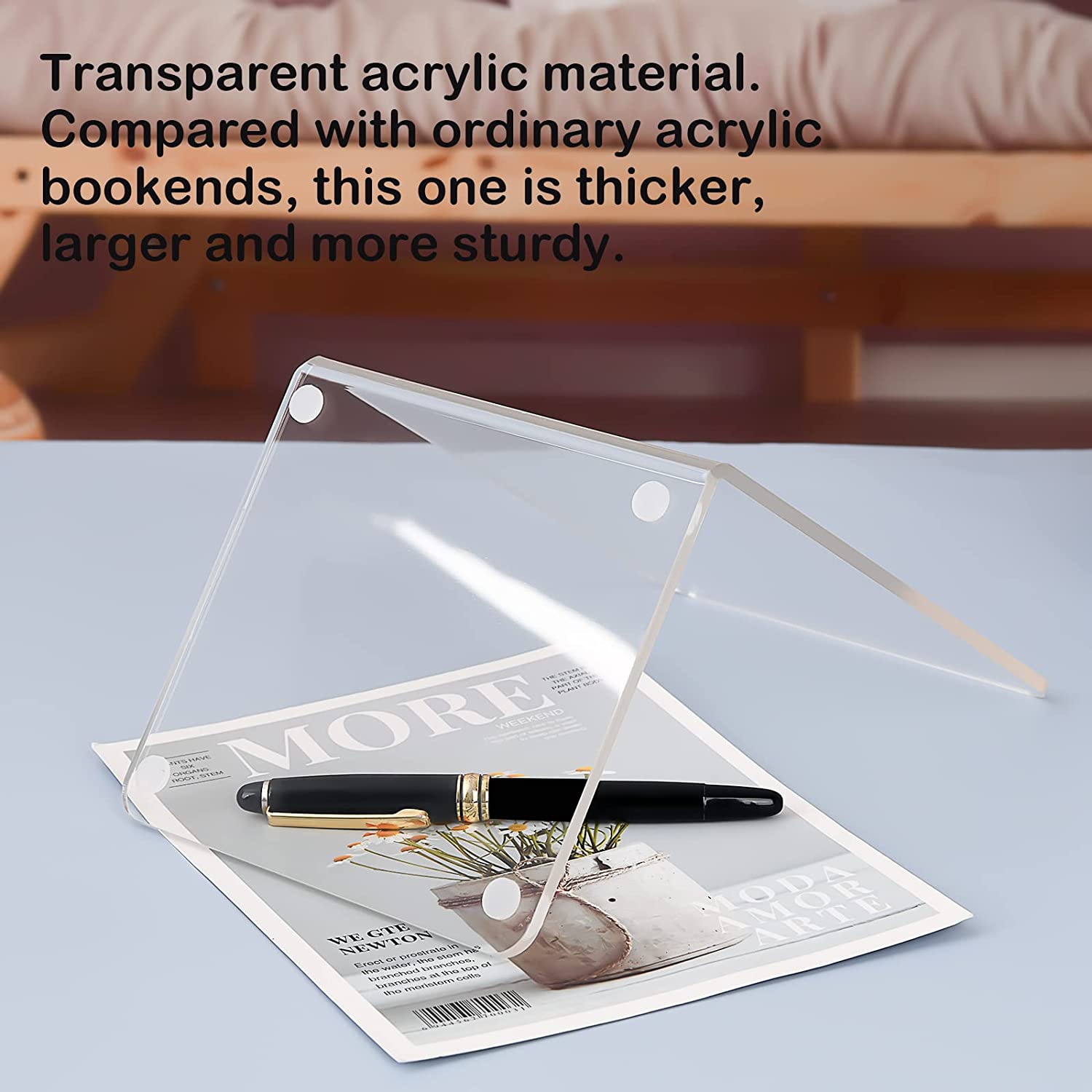 • ✅ CLEAR DESIGN - Clear bookend allows easy access to your favorite magazine, recipe, or even books and keep publications clean, intact, dust-free, and un-rumpled.