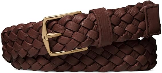 Michael Kors Mens Leather Braided Dress Belt Brown 38