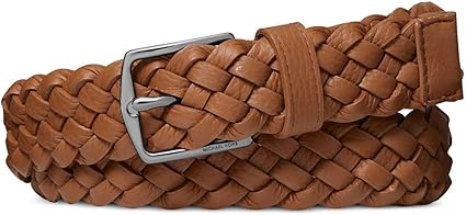 Michael Kors Mens Leather Braided Dress Belt Tan 36