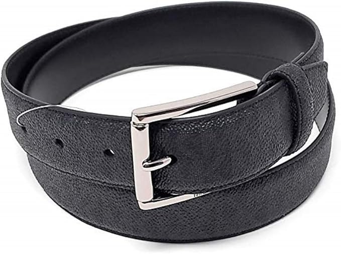 Michael Kors Silver Buckle Mens Leather Dress Belt, Black, 36"