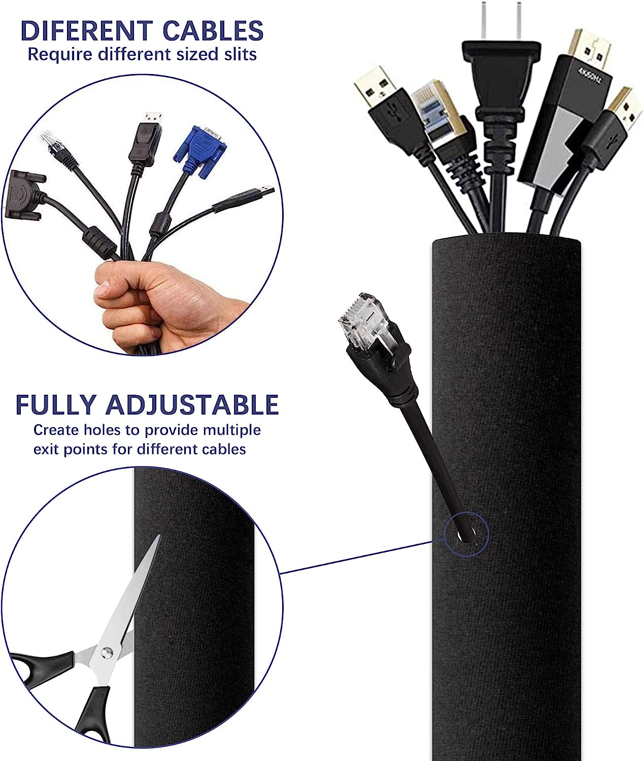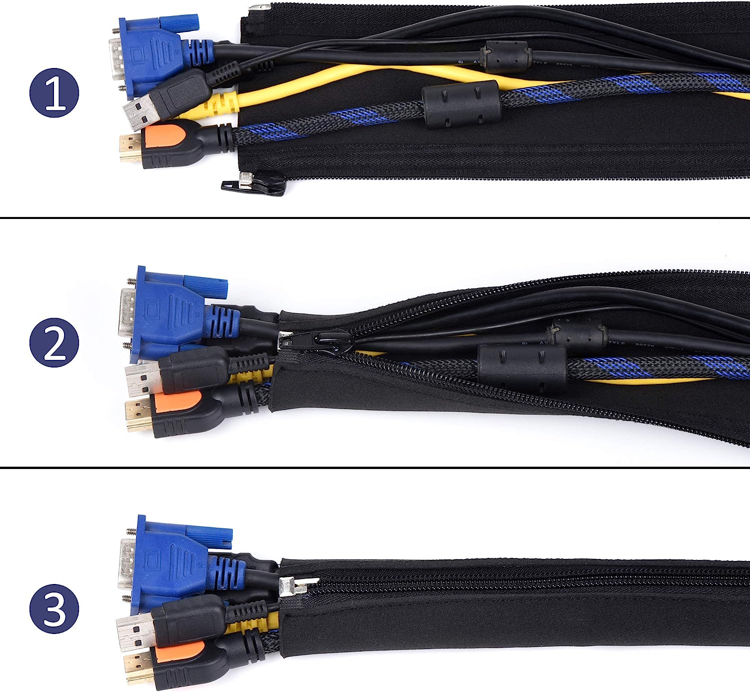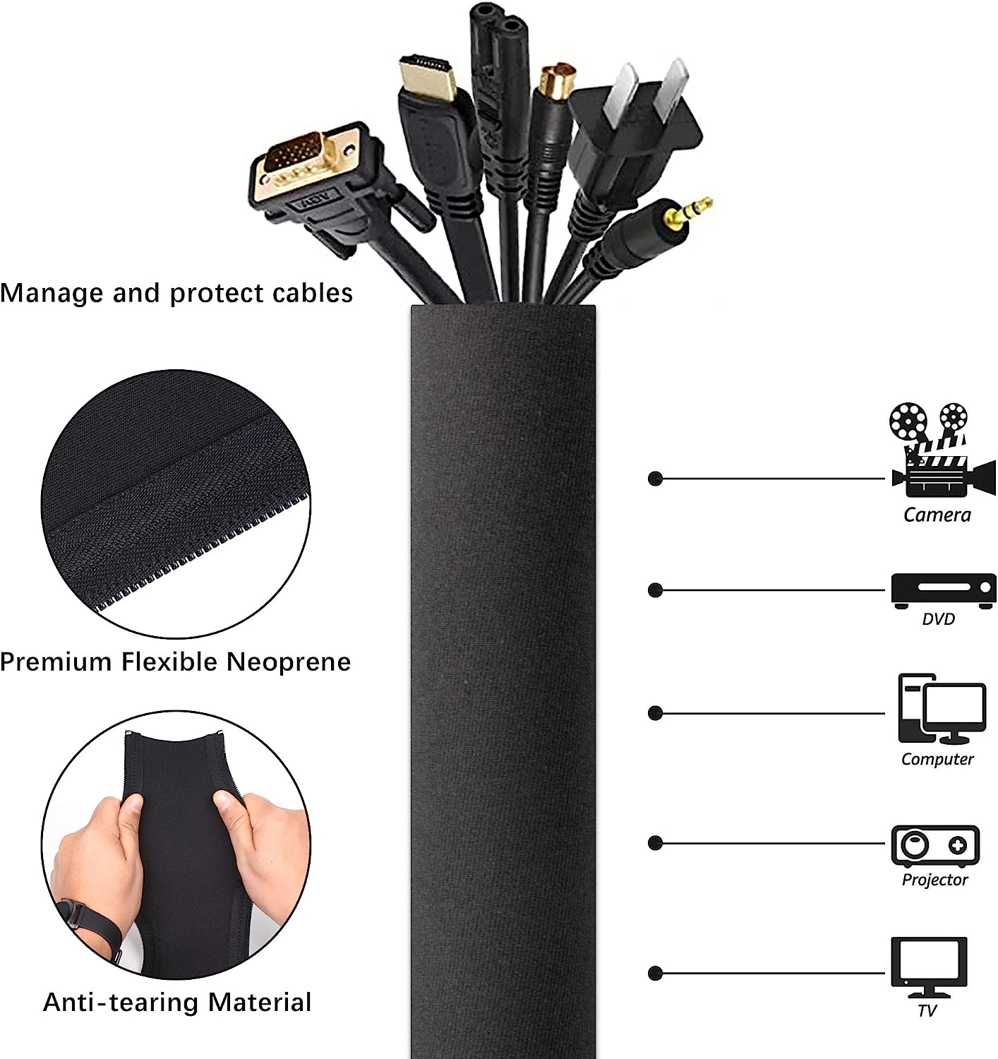 • [Less Chemical Smell] The Cable Management Sleeves made from premium flexible neoprene, make your health. Meanwhile,protect multiple cables from tearing and chewing by pets.