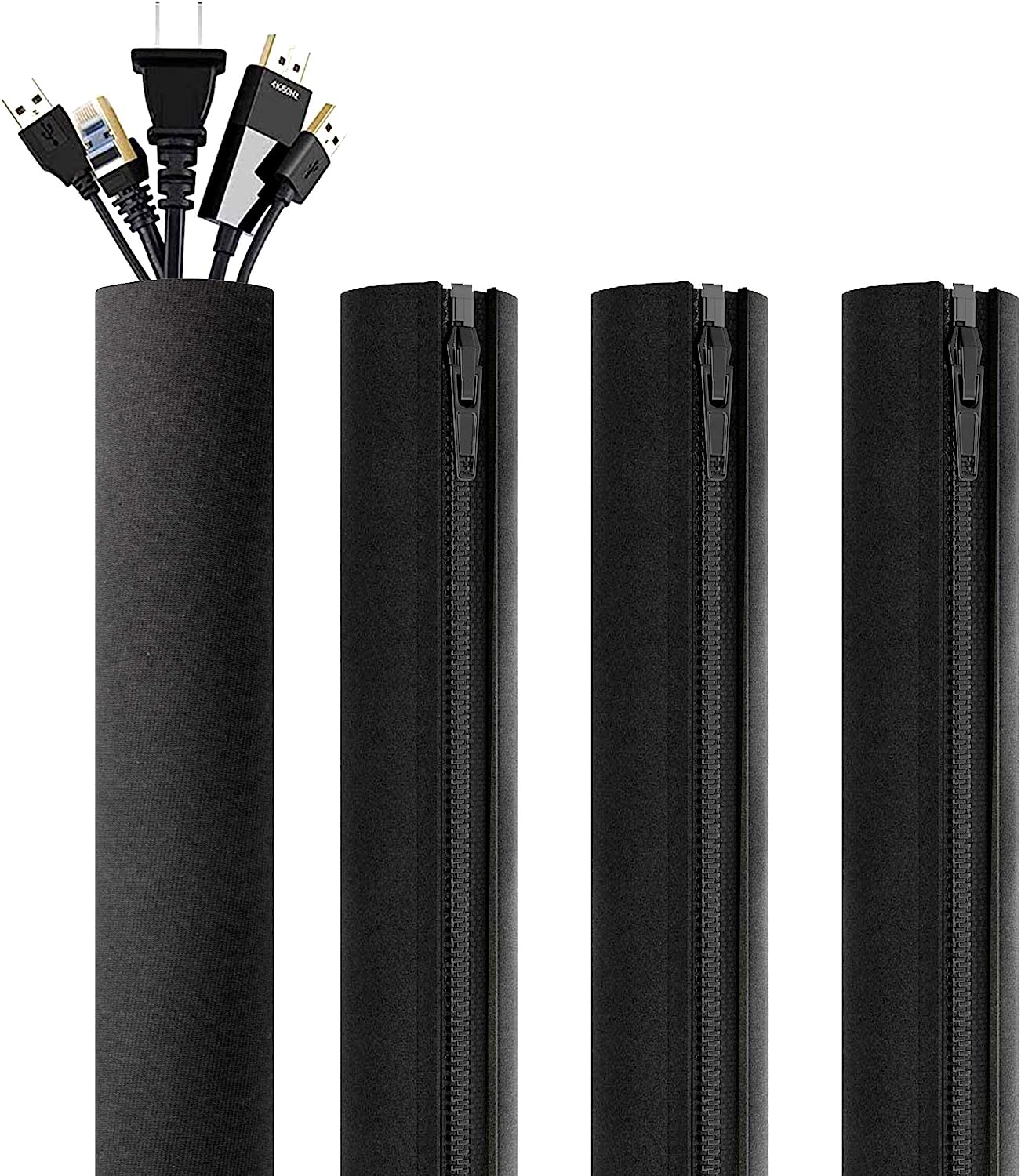 Migeec Cable Management Sleeve, 4 Packs Cord Organizer Cable Hider for TV Computer Home Entertainment Laptop, Black Wire Organizer and Cable Cover, 20 inch