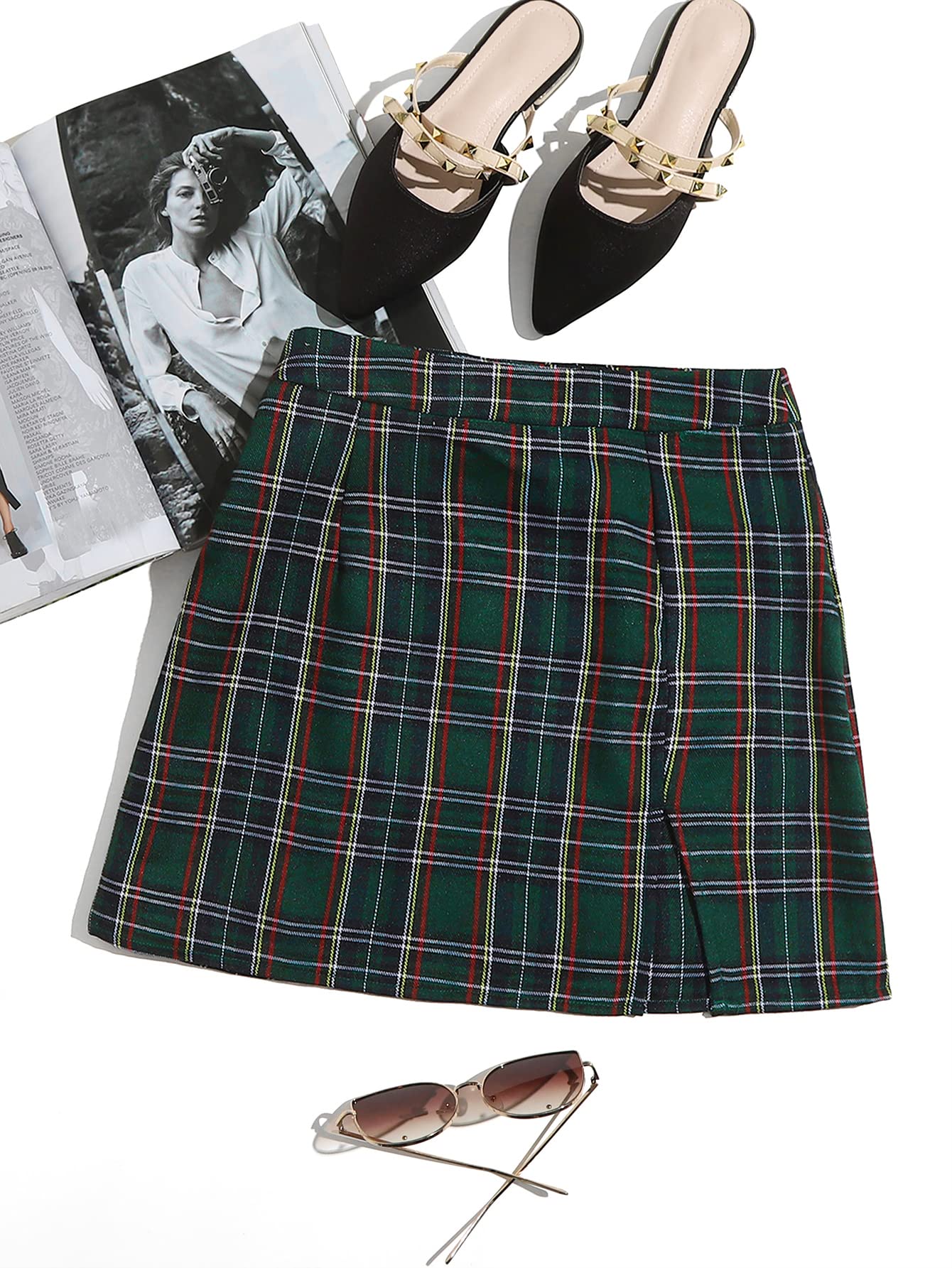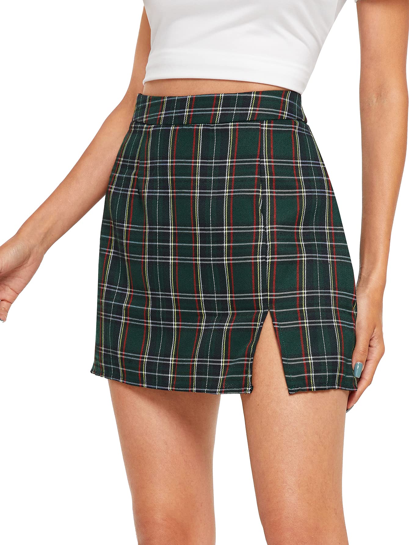 • Feature: Plaid, Split Hem, High Waisted, Mini Length, Bodycon, Casual