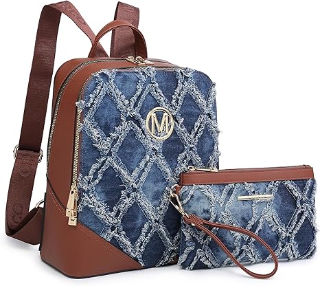 MKP Women Fashion Backpack Purse Jean Denim Handbag Anti-Theft Rucksack Travel College Shoulder Bag with Wristlet
