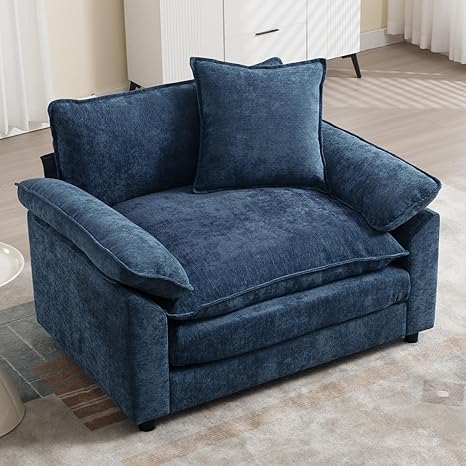 Modern Oversized Chair, Comfy Chenille Accent Chair Large Upholstered Armchair with Extra Thick and Deep Seat Lounge Chair for Living Room, Bedroom, Apartment (Blue)
