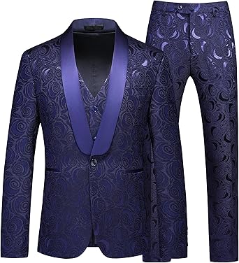 MOGU Men's 3-Piece Slim Fit Suit - White, Black, Gray, Pink Tuxedos for Prom and Wedding