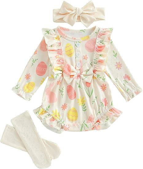 My First Easter Baby Girl Outfit Bunny Newborn Romper Shorts Skirt Socks Set Infant Toddler Cute Summer Clothes