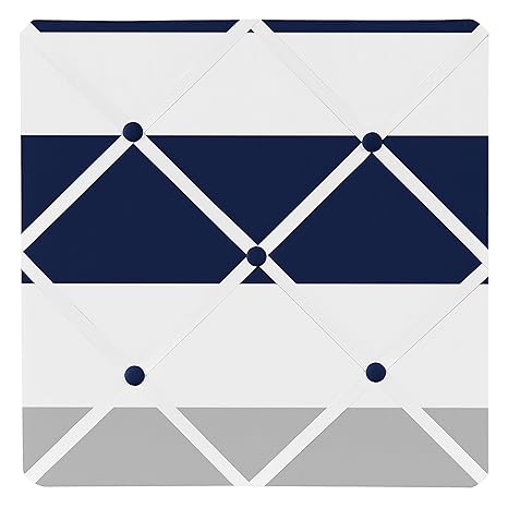 Navy Blue, Gray and White Fabric Memory/Memo Photo Bulletin Board for Stripe Collection