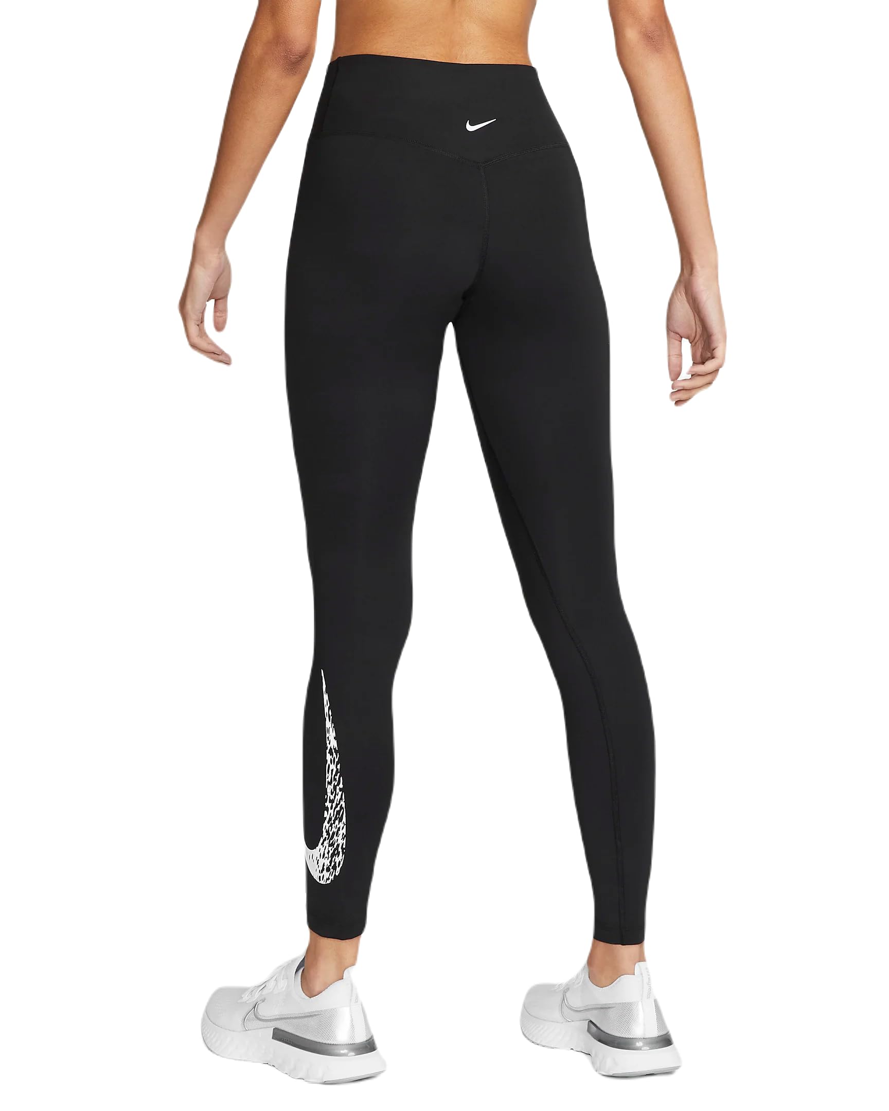 Nike Swoosh Run Women's 7/8 Mid-Rise Graphic Running Leggings, Black/White, L Regular US