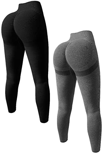 OQQ Women's 2 Piece Butt Lifting Yoga Legging Workout High Waist Tummy Control Ruched Booty Pant, Black Grey, Large