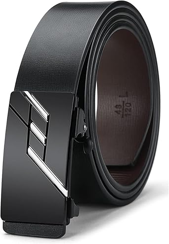 Oyifan Black Leather Belts for Men Dress Casual Ratchet Belt, Cut To Fit, Gift Box