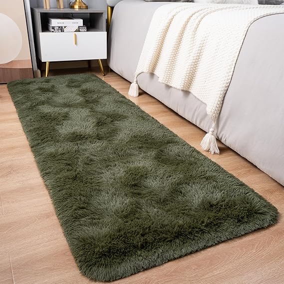 Pacapet Fluffy Runner Rugs for Bedroom, 2x6 Feet Olive Green Shag Area Rug, Plush Fuzzy Carpet for Living Room Hallway Beside Kids Girls Boys Dorm Nursery Home Decor
