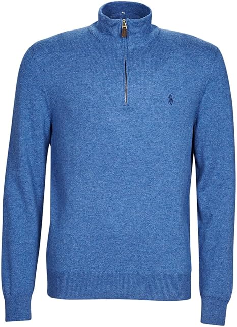 POLO RALPH LAUREN Men's Quarter-Zip Wool Blend Sweater (Blue HTR, 2XL)
