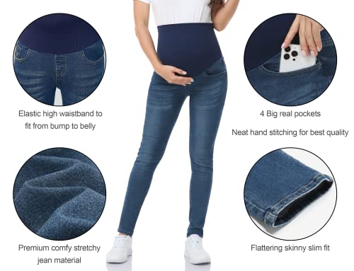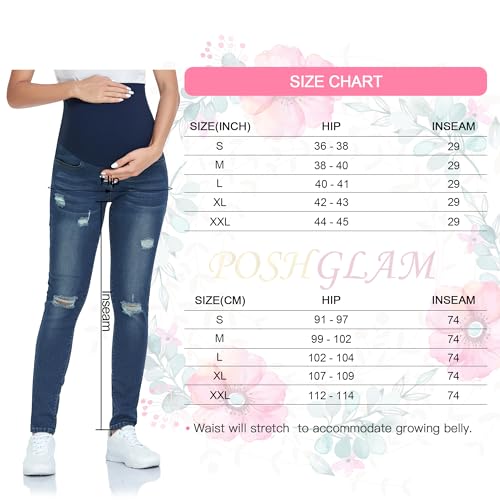 POSHGLAM Women's Maternity Jeans Over Belly Skinny Denim Jeggings Comfy Stretch Pregnancy Pants