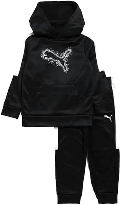 PUMA Kids' Toddler Fleece Hoodie & Joggers (BLACK/White, 2T)