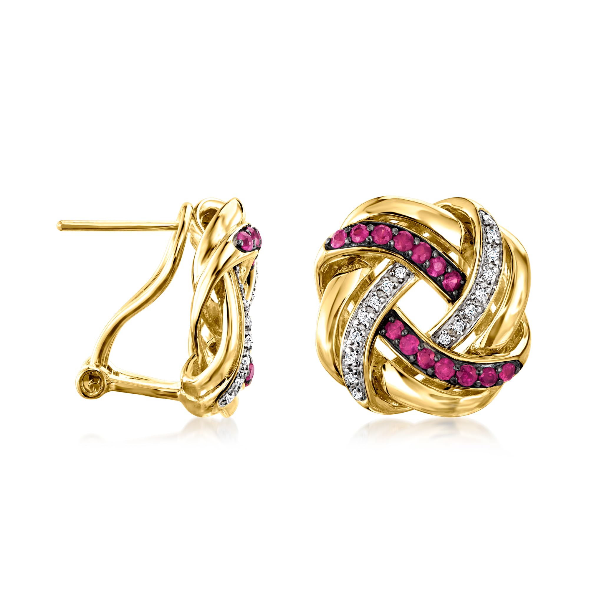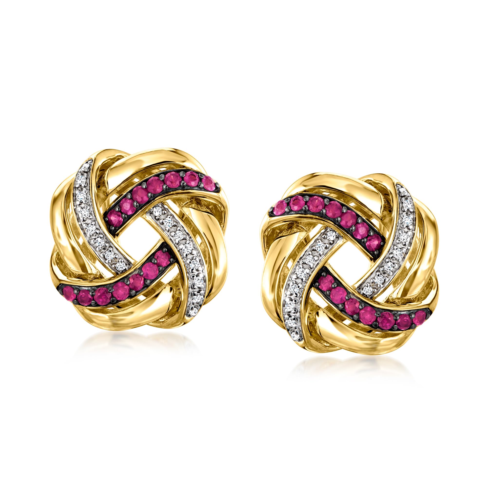 Ross-Simons 0.40 ct. t.w. Ruby and .10 ct. t.w. Diamond Love Knot Earrings in 18kt Gold Over Sterling
