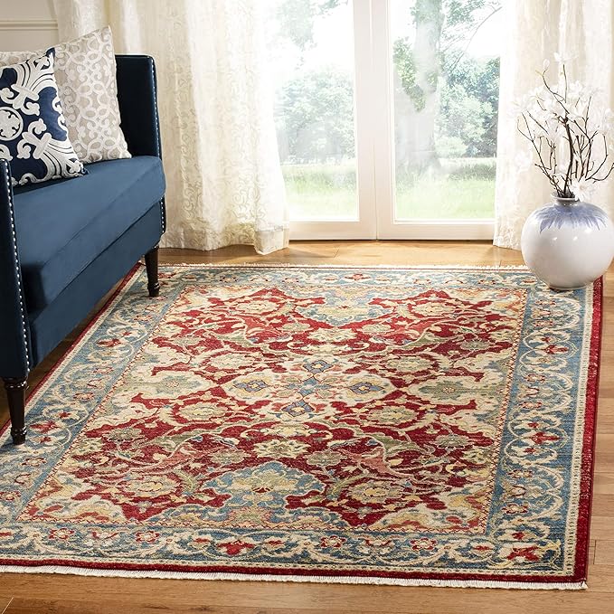 SAFAVIEH Kashan Collection Area Rug - 9' x 12'6", Red & Blue, Traditional Oriental Design, Non-Shedding & Easy Care, Ideal for High Traffic Areas in Living Room, Bedroom (KSN307Q)
