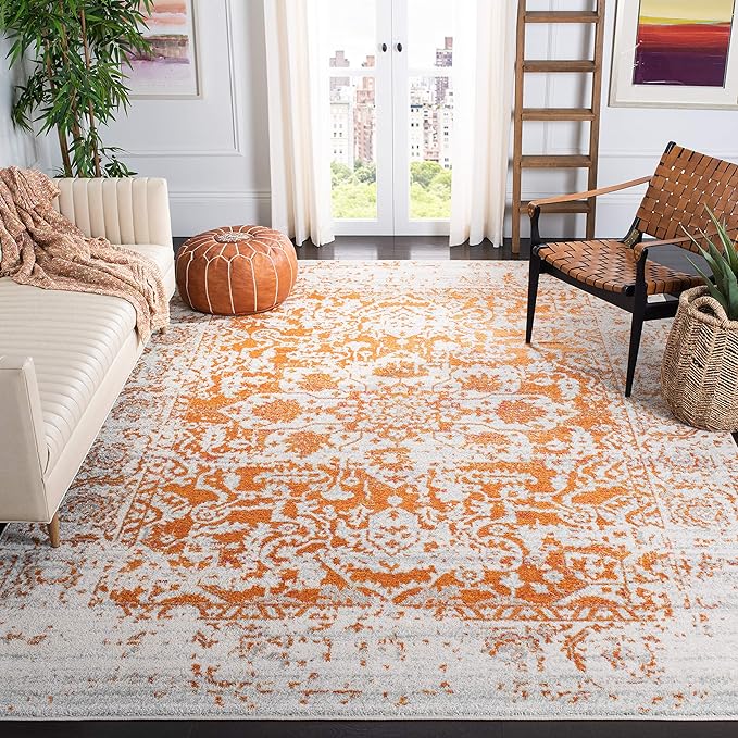 SAFAVIEH Madison Collection 5'3" Square Orange / Ivory MAD603P Oriental Snowflake Medallion Distressed Non-Shedding Living Room Bedroom Area Rug